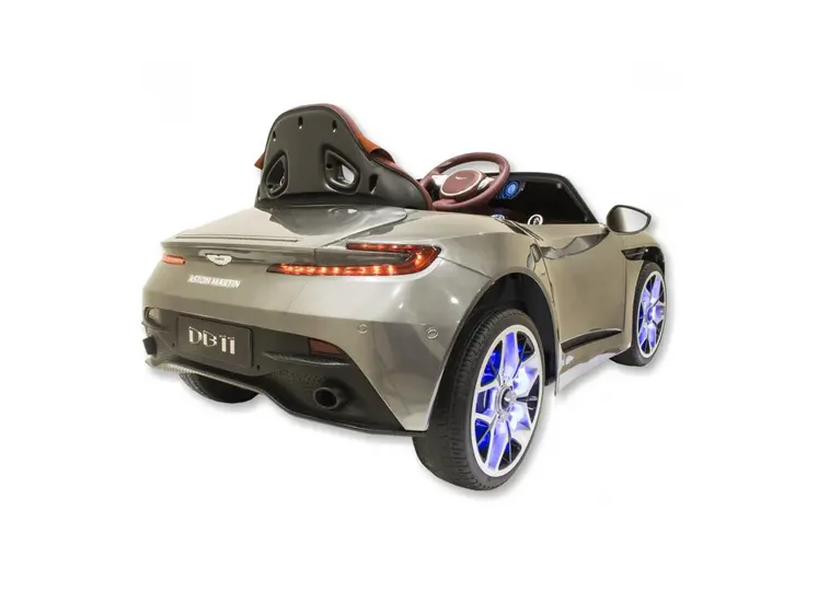ბავშვის ელექტრო მანქანა ASTON MARTIN DB11 კაუჩუკის საბურავებით და ტყავის სკამით