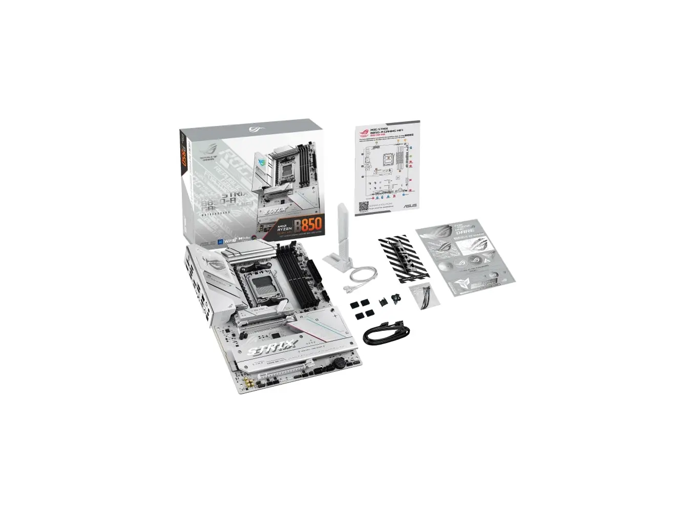 ASUS ROG STRIX B850-A GAMING WIFI არის მაღალი ხარისხის დედა დაფა, რომელიც განკუთვნილია AMD AM5 პლატფორმაზე მომუშავე უახლესი თაობის პროცესორებისთვის. ის უზრუნველყოფს DDR5 მეხსიერების მხარდაჭერას, რაც უზრუნველყოფს მაღალ სიჩქარეს და სისტემის ოპტიმალურ რეაგირებას. დაფა აღჭურვილია PCIe 5.0 მხარდაჭერით, რამდენიმე M.2 სლოტით, HDMI და DisplayPort პორტებით გამოსახულების მრავალფეროვანი არჩევისთვის. ინტეგრირებული WiFi და Bluetooth უზრუნველყოფს სწრაფ და სტაბილურ უსადენო კავშირს. ATX ფორმატის კონსტრუქცია და ROG სერიის გამორჩეული დიზაინი შესანიშნავად ერგება როგორც გეიმერულ, ისე პროფესიონალურ სისტემებს.