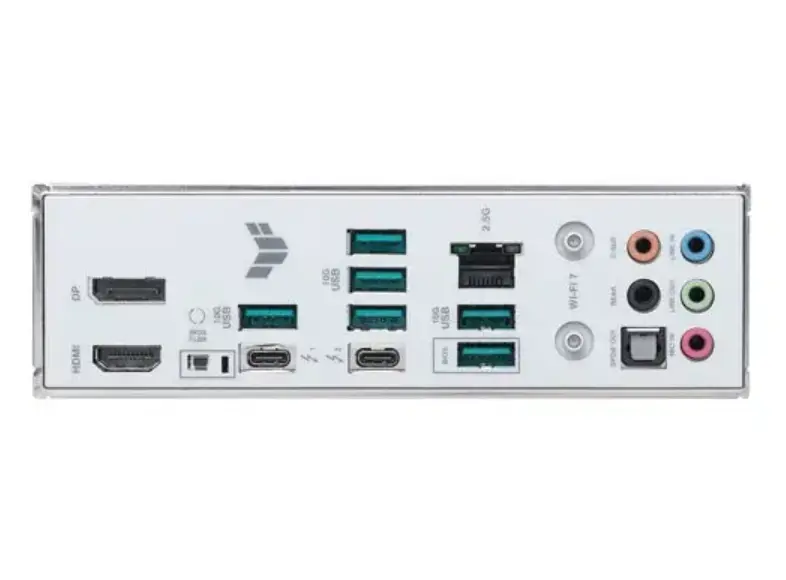- USB პორტები უკანა პანელზე: 2 x Thunderbolt™ 4 ports (2 x USB Type-C®), 6 x USB 10Gbps ports (6 x Type-A)