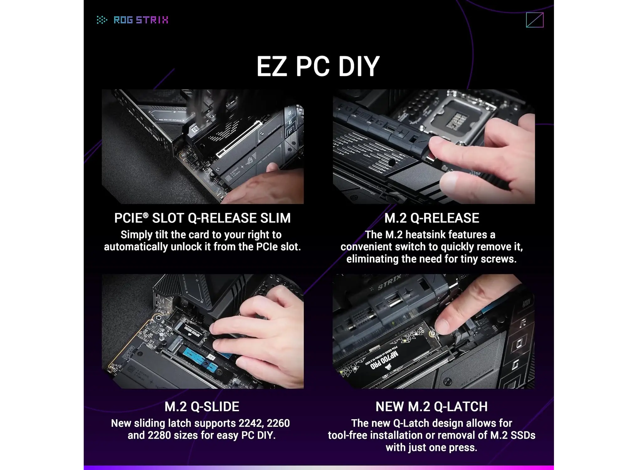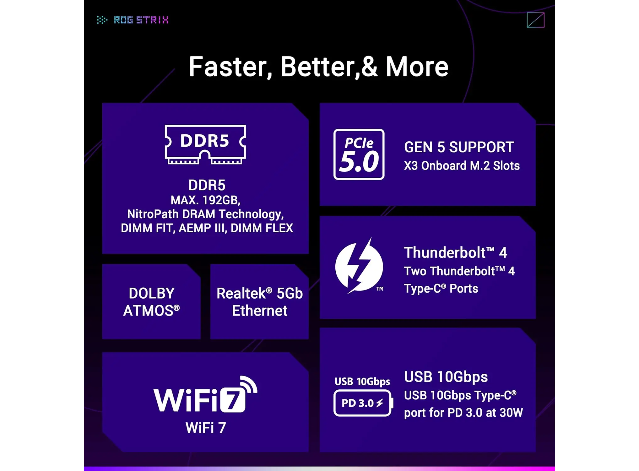 - PCIe 5.0 მხარდაჭერა: მზადყოფნა უახლესი თაობის ვიდეო დაფებისა და NVMe SSD მეხსიერებისთვის მაქსიმალური სიჩქარისთვის.