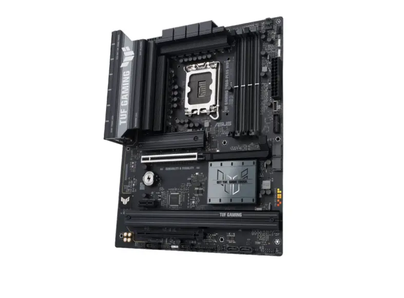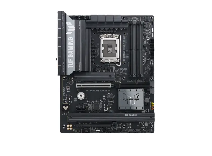 ASUS TUF GAMING B860‑PLUS WIFI არის მყარად აწყობილი ATX კლასის დედა დაფა, შექმნილი Intel Core Ultra პროცესორებისთვის (LGA1851). Intel B860 ჩიპსეტით, 4×DDR5 DIMM სლოტით და მხარდაჭერით DDR5‑ზე 8666+ MT/s, ეს დაფა უზრუნველყოფს მდიდარ მეხსიერების შესაძლებლობებს. ის გთავაზობთ PCIe 5.0 x16 ვიდეო ბარათისთვის, დამატებითი PCIe 4.0 სლოტებით და სამი M.2 ადგით (ერთ-ერთი PCIe 5.0, ორნი PCIe 4.0). განახლებული 12+1+2+1 DrMOS VRM დიზაინი, მსხვილი გაგრილების სადიოდითა და SafeSlot ტექნოლოგიით, უზრუნველყოფს საიმედო წვრთინებას და დიდი დატვირთვისთანაც სტაბილურ მუშაობას. ინტეგრირებული Wi‑Fi 7 ანტენით, Bluetooth 5.4 და Realtek 2.5Gb LAN კავშირი უზრუნველყოფს ქსელის მაღალ სიჩქარეს და თამაშებისთვის ოპტიმალურ პირობებს. ყინვა/სიმკვრივე–ჭეშმარიტი TUF ხარისხი აქვს Armoury Crate + Aura Sync მხარდაჭერით, ხოლო DIY-ს დაყენება გამარტივებულია უვეიფარე I/O განათებით და BIOS FlashBack ღილაკით.