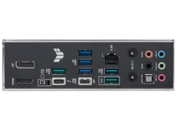- უკანა I/O პორტები: 5 x Audio jacks, 3 x USB 5Gbps ports (3 x Type-A), 1 x BIOS FlashBack™ button, 1 x Intel® 2.5Gb Ethernet port, 1 x Wi-Fi module , 1 x Optical S/PDIF out port, 1 x Thunderbolt™ 4 USB Type-C® port, 1 x USB 20Gbps port (1 x USB Type-C® with DP Alt mode), 1 x DisplayPort, 1 x HDMI, 3 x USB 10Gbps ports (3 x Type-A)