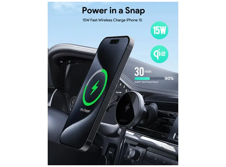 მანქანის უსადენო დამტენი Aukey 15W HD-MC13 Qi2 Wireless Charging Phone Mount - Black