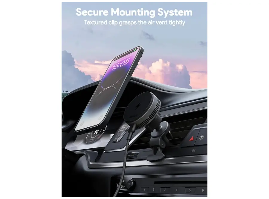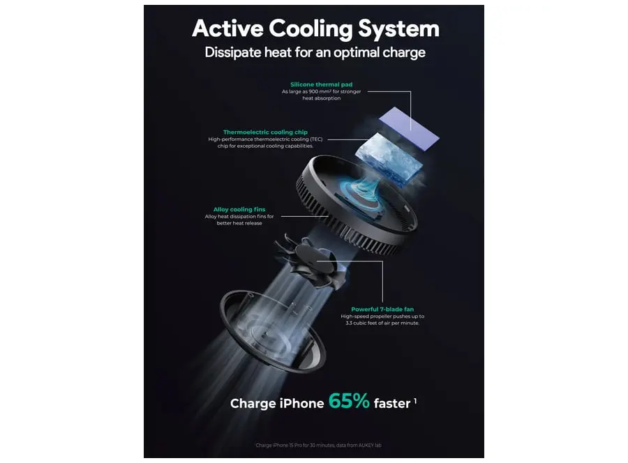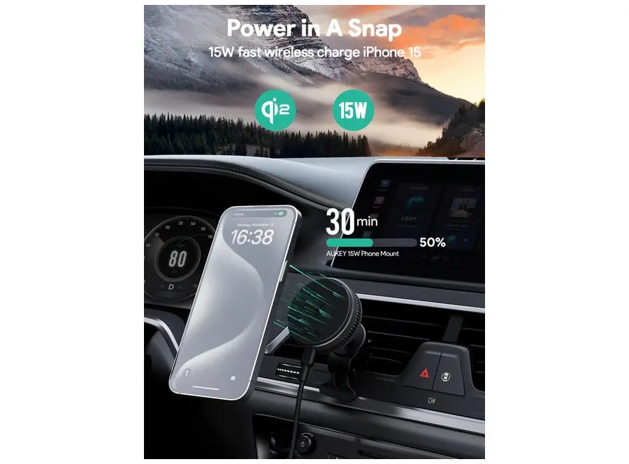 ავტომობილის უსადენო დამტენი Aukey 15W HD-MC13A MagFusion Dash Pro Qi2 Active Cooling Wireless Charging Phone Mount - Gray