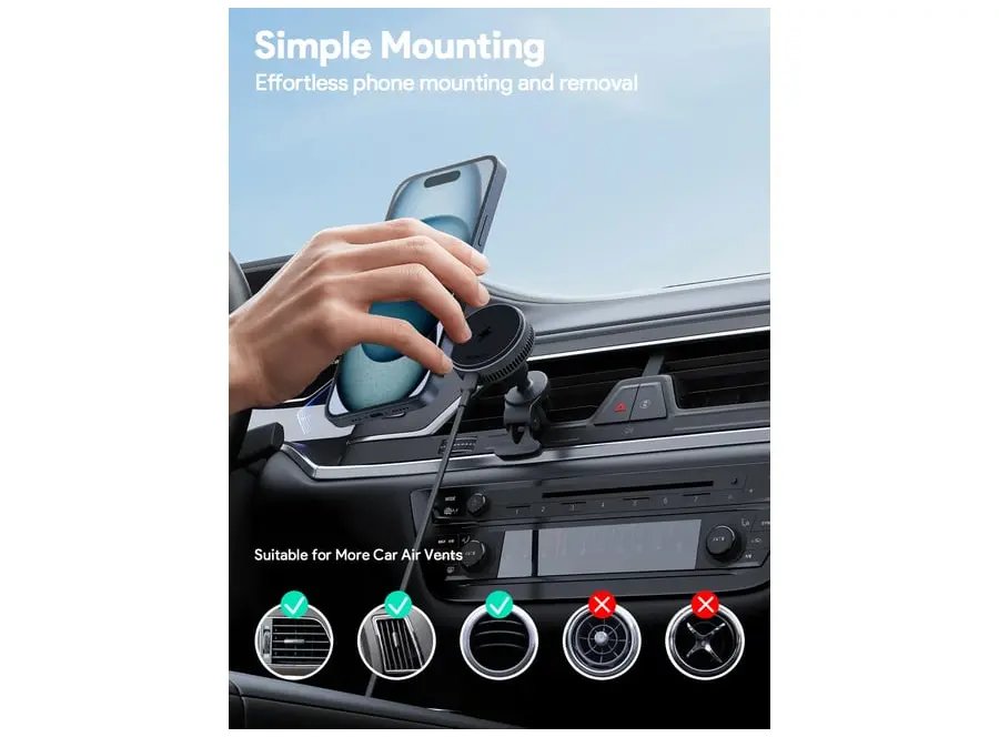 Aukey HD-MC13A MagFusion Dash Pro Qi2 არის ინოვაციური ავტომობილის ტელეფონის დამჭერი, რომელიც აერთიანებს 15W სწრაფ უსადენო დატენვას და აქტიური გაგრილების სისტემას. Qi2 სერტიფიცირებული ტექნოლოგია უზრუნველყოფს სწრაფ და უსაფრთხო დატენვას, ხოლო ძლიერი მაგნიტური ძალა ინარჩუნებს მოწყობილობას სტაბილურად, თუნდაც არათანაბარ გზებზე. აქტიური გაგრილების სისტემა ამცირებს დატენვის დროს წარმოქმნილ სითბოს, რაც ხელს უწყობს ბატარეის ხანგრძლივობას. 360°-იანი რეგულირებადი კუთხე და უსაფრთხო სავენტილაციო სამაგრი უზრუნველყოფს კომფორტულ და მრავალმხრივ გამოყენებას. კომპაქტური დიზაინი და მეტალის კორპუსი აერთიანებს ელეგანტურობასა და გამძლეობას, რაც მას იდეალურ აქსესუარად აქცევს ნებისმიერი ავტომობილის ინტერიერისთვის.