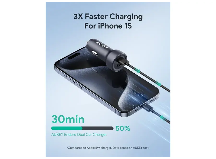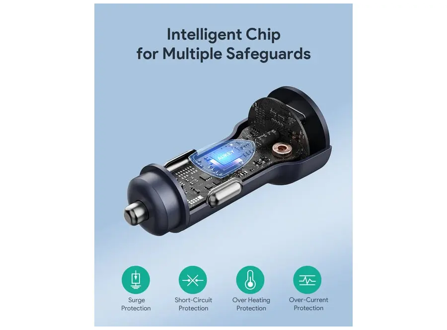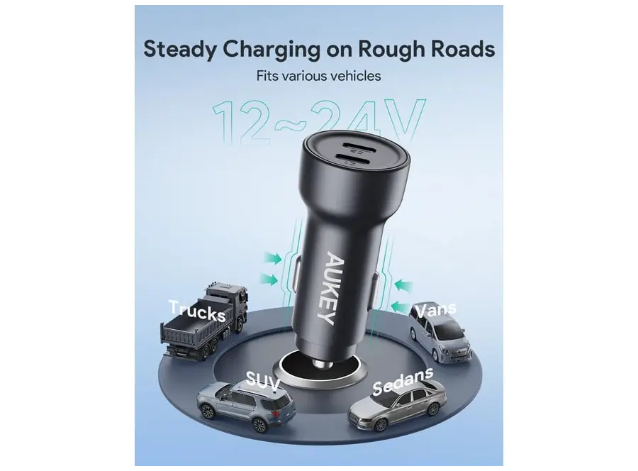 Aukey CC-Y23 Enduro 65W ორმაგი USB-C მანქანის დამტენი წარმოადგენს კომპაქტურ და მძლავრ გადაწყვეტას თქვენი მოწყობილობების სწრაფი დატენვისთვის გზაში. ორი USB-C პორტი უზრუნველყოფს ერთდროულად ორი მოწყობილობის დატენვას, საერთო სიმძლავრით 65W. თითოეული პორტი მხარს უჭერს Power Delivery 3.0-ს, PPS-ს, Quick Charge 3.0-ს და სხვა სწრაფი დატენვის პროტოკოლებს, რაც საშუალებას გაძლევთ სწრაფად დატენოთ სმარტფონები, ტაბლეტები და ლეპტოპები. ელეგანტური ალუმინის კორპუსი უზრუნველყოფს გამძლეობას და ეფექტურ სითბოს გაფანტვას. კომპაქტური დიზაინი და 29.6 გრამიანი წონა ხდის მას იდეალურ არჩევანად ნებისმიერი ავტომობილისთვის. ინტელექტუალური დაცვის სისტემა იცავს მოწყობილობებს გადახურების, გადატვირთვისა და მოკლე ჩართვისგან.