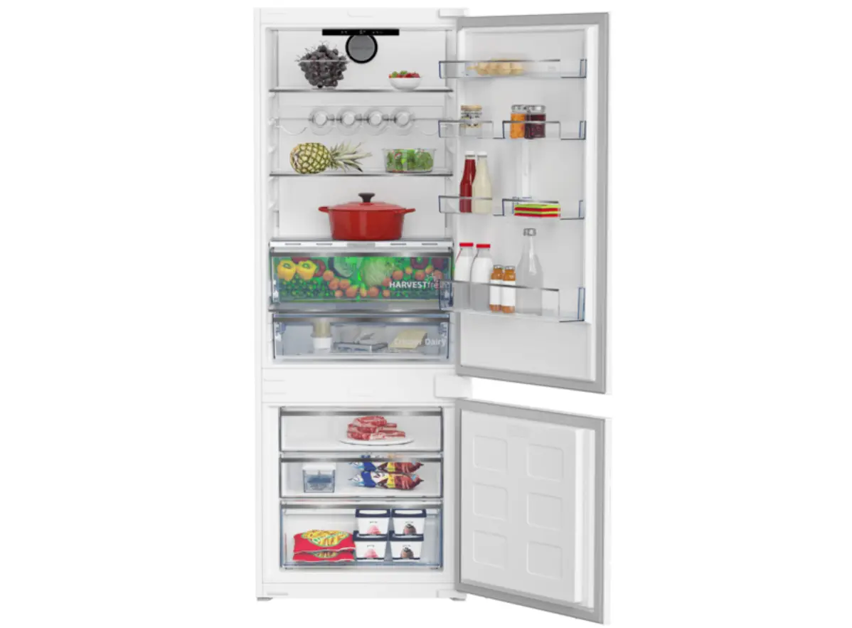Beko BCNE400I35ZS b300 არის ჩასაშენებელი ტიპის მაცივარი რომელიც იდეალურად ერწყმის სამზარეულოს ინტერიერს და უზრუნველყოფს პროდუქტების ხანგრძლივ შენახვას. მოდელი აღჭურვილია ინოვაციური HarvestFresh ტექნოლოგიით რაც სამი ფერის განათების მეშვეობით ბაძავს მზის ბუნებრივ ციკლს და ინარჩუნებს ვიტამინებს ხილსა თუ ბოსტნეულში. ორმაგი გაგრილების სისტემა NeoFrost ხელს უშლის სუნის გადატანას განყოფილებებს შორის და უზრუნველყოფს ტენიანობის ოპტიმალურ დონეს. ინვერტორული კომპრესორი გარანტიას იძლევა რომ მოწყობილობა იმუშავებს ჩუმად და ეკონომიურად რაც კომფორტულ გარემოს ქმნის სახლში. შიდა სივრცე დაგეგმილია ერგონომიულად რათა ყველა ტიპის პროდუქტი მარტივად განთავსდეს. ეს მაცივარი საუკეთესო გადაწყვეტილებაა თანამედროვე ოჯახისთვის სადაც სტილი და ფუნქციონალი თანაბრად მნიშვნელოვანია.