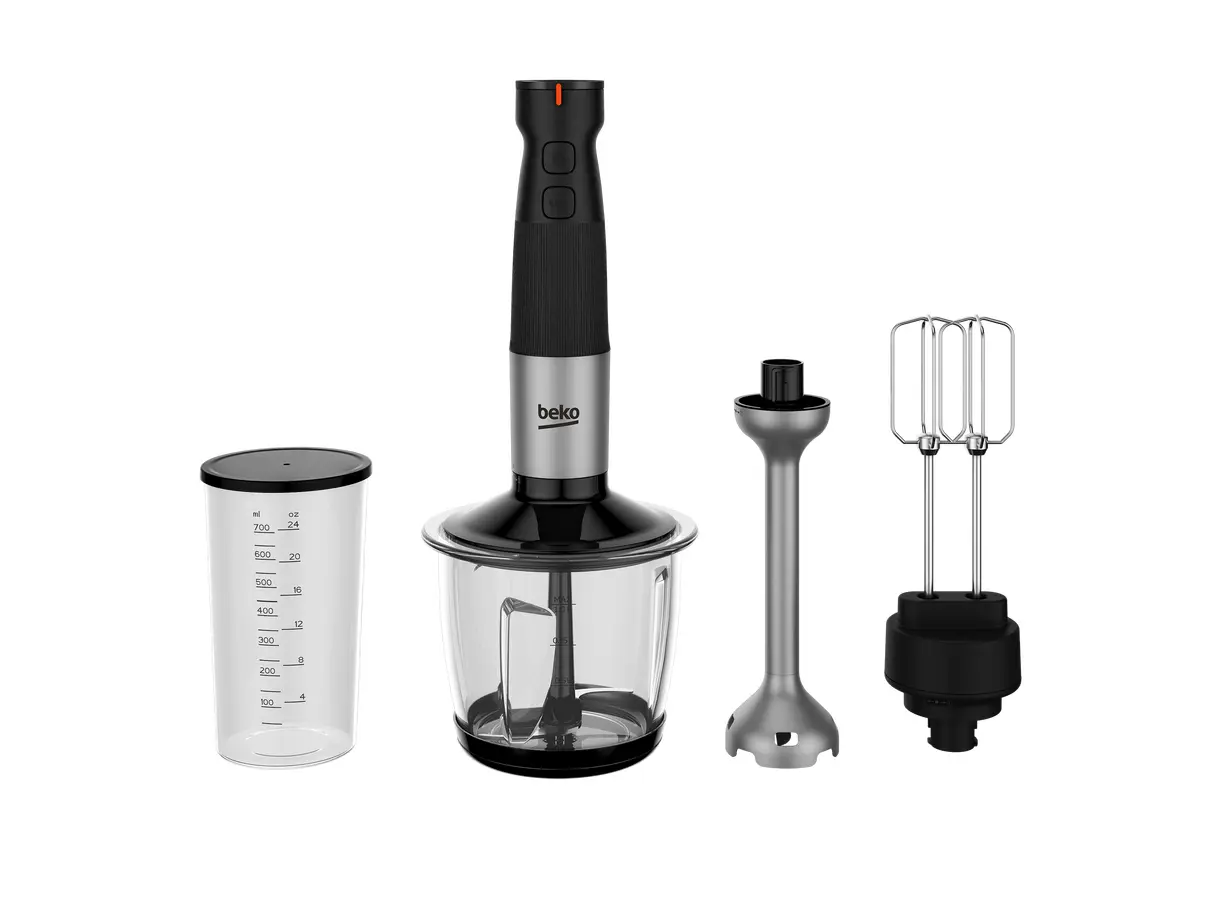 Beko HBA 81762 BX კომპლექტში შეიცავს სხვადასხვა აქსესუარებს, მათ შორის საჭრელ ტარას, საკონტეინერო ფინჯანსა და მიქსერის თავაკს, რაც მას მულტიფუნქციურ მოწყობილობად აქცევს. მისი ერგონომიული დიზაინი და მომხმარებლის კომფორტზე მორგებული სახელური უზრუნველყოფს მარტივ და კომფორტულ გამოყენებას.
