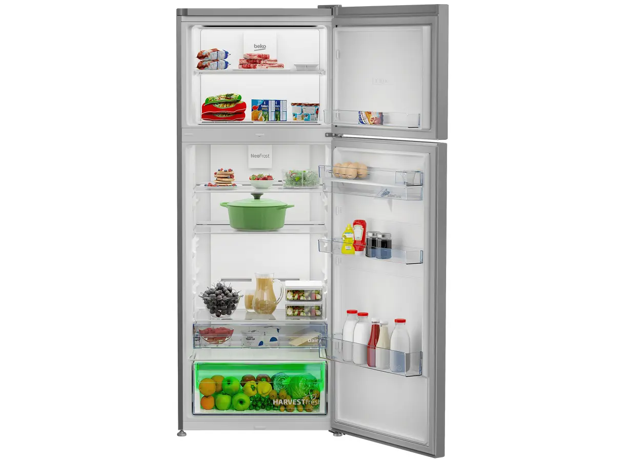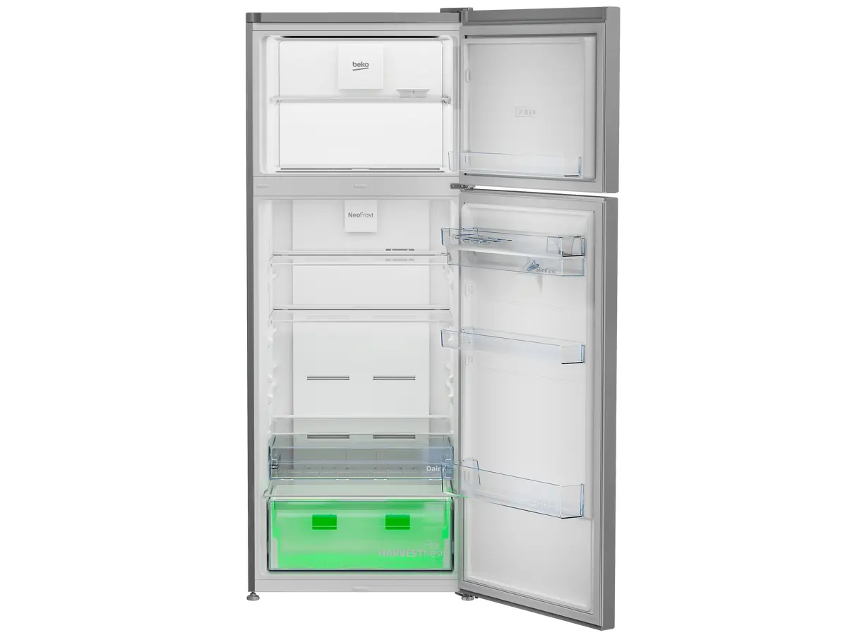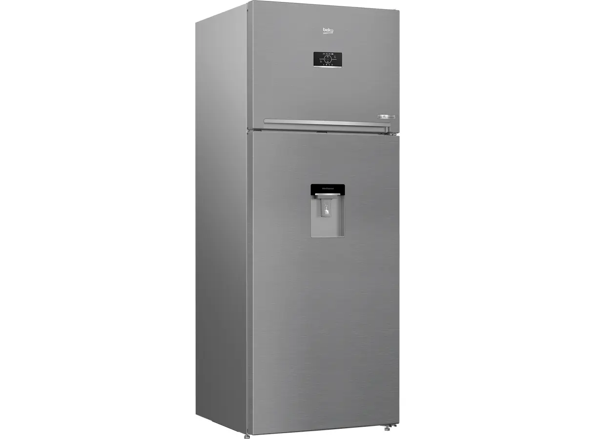 Beko RDNE455E40DXBN არის ორკარიანი, თავისუფლად მდგომი მაცივარი, რომელიც აერთიანებს თანამედროვე ტექნოლოგიებსა და ელეგანტურ დიზაინს. მისი საერთო მოცულობა შეადგენს 406 ლიტრს, მათ შორის მაცივრის განყოფილება 313 ლიტრია, ხოლო საყინულე — 93 ლიტრი. Total No Frost სისტემა უზრუნველყოფს თანაბარ გაგრილებას და ხელს უშლის ყინულის დაგროვებას. NeoFrost™ Dual Cooling ტექნოლოგია ინარჩუნებს ოპტიმალურ ტემპერატურასა და ტენიანობას, რაც ხელს უწყობს საკვების ხანგრძლივ შენახვას და არეგულირებს სუნების გადაცემას. ProSmart™ ინვერტორული კომპრესორი უზრუნველყოფს ენერგოეფექტურობას და დაბალ ხმაურს. HarvestFresh™ ტექნოლოგია ინარჩუნებს ხილისა და ბოსტნეულის ვიტამინებს, ხოლო SlimTank™ წყლის დისპენსერი უზრუნველყოფს მოხერხებულ გამოყენებას. მაცივარი აღჭურვილია LED განათებით, ციფრული ეკრანითა და უსაფრთხოების ფუნქციებით, რაც მას იდეალურ არჩევანად აქცევს თანამედროვე სამზარეულოსთვის.