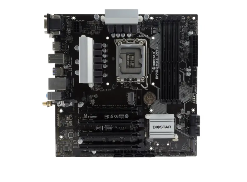 შეიძინეთ დედა დაფა Biostar B760MXC PRO და ააწყვეთ თანამედროვე, მაღალი წარმადობის სისტემა. ეს uATX (Micro ATX) ფორმ-ფაქტორის მოდელი დაფუძნებულია Intel B760 ჩიპსეტზე და აღჭურვილია LGA1700 სოკეტით, რაც სრულ მხარდაჭერას უცხადებს Intel-ის მე-12, მე-13 და მე-14 თაობის პროცესორებს. მისი მთავარი უპირატესობა უახლესი ტექნოლოგიების მხარდაჭერაა.