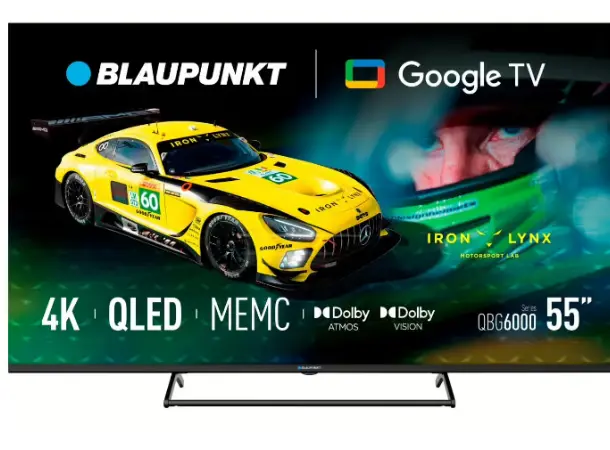 BLAUPUNKT 55QBG6000 არის 55 დუიმიანი ტელევიზორი რომელიც აღჭურვილია მოწინავე QLED ტექნოლოგიით და გვთავაზობს გამოსახულების სრულიად ახალ სტანდარტს. კვანტური წერტილების სისტემა უზრუნველყოფს ფერების მილიარდობით ტონის გადმოცემას რაც სურათს რეალისტურსა და გაჯერებულს ხდის. 4K გაფართოება და HDR მხარდაჭერა კი გარანტიას იძლევა რომ ეკრანზე ყველაზე მცირე დეტალსაც კი მკაფიოდ დაინახავთ. მოწყობილობა მუშაობს Google TV ოპერაციულ სისტემაზე რაც გულისხმობს წვდომას ათასობით აპლიკაციასა და სტრიმინგ სერვისზე. ხმოვანი მართვის ფუნქცია საგრძნობლად ამარტივებს სასურველი კონტენტის მოძიებას. ტელევიზორის უჩარჩო დიზაინი შლის საზღვრებს გამოსახულებასა და რეალობას შორის და ნებისმიერ ინტერიერს დახვეწილ იერს სძენს. Dolby Audio სისტემა კი ვიზუალურ ეფექტს მოცულობითი და სუფთა ჟღერადობით ავსებს.