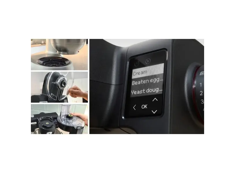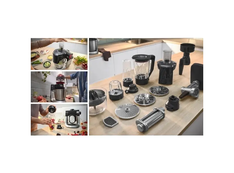 მოყვება მრავალფეროვანი აქსესუარები, მათ შორის ცომის მოსაზელი, კვერცხის სათქვეფი, დისკები დასაჭრელად და საფქვავი, რაც ამ მოწყობილობას ნამდვილ უნივერსალურ დამხმარედ აქცევს სამზარეულოში.