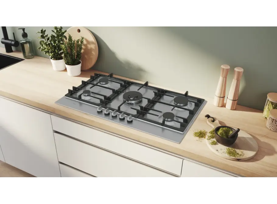 გაზქურის ზედაპირი BOSCH PCR9A5I90M არის მაღალი ხარისხის და ფუნქციური მოწყობილობა, რომელიც თქვენს სამზარეულოს მიანიჭებს როგორც კომფორტს, ასევე ელეგანტურ იერს. ფართო ზედაპირი და 5 გაზქურის თვალის კომბინაცია იდეალურია დიდი რაოდენობით კერძების მოსამზადებლად. მასში შედის ძლიერი Wok ბერნერი, რომელიც უზრუნველყოფს სწრაფ გათბობას და ენერგოეფექტურობას, რაც განსაკუთრებით მოსახერხებელია აზიური კერძებისა და დიდი ტაფების გამოყენებისას. თუჯის მასიური გრილები ხელს უწყობს ჭურჭლის სტაბილურობას და გამძლეობას, ხოლო Inox-ის ზედაპირი მარტივად იწმინდება და ინარჩუნებს ბზინვარებას წლების განმავლობაში. FlameSelect ტექნოლოგია იძლევა ზუსტ კონტროლს ცეცხლის ინტენსივობაზე, რაც უფრო კომფორტულს ხდის მზადების პროცესს. უსაფრთხოების სისტემები, მათ შორის გაზის გაჟონვის საწინააღმდეგო ფუნქცია, თქვენს სამზარეულოს კიდევ უფრო დაცულს ხდის. BOSCH PCR9A5I90M არის არჩევანი მათთვის, ვისაც სურს ეფექტური, უსაფრთხო და თანამედროვე სამზარეულოს ტექნიკა.