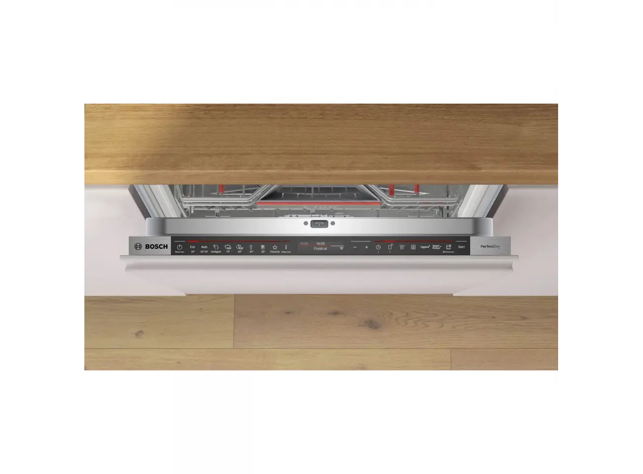 BOSCH SMD8TCX04E არის მაღალი კლასის სრულად ინტეგრირებული ჭურჭლის სარეცხი მანქანა, რომელიც გამოირჩევა თანამედროვე ტექნოლოგიებითა და ენერგოეფექტურობით. მისი 14 კომპლექტიანი ტევადობა იდეალურია საშუალო და დიდი ოჯახებისთვის. EcoSilence Drive™ ტექნოლოგია უზრუნველყოფს წყლის და ენერგიის ეკონომიას, ხოლო PerfectDry სისტემა უზრუნველყოფს ჭურჭლის სრულად გაშრობას, მათ შორის პლასტმასის ნაწარმსაც. Home Connect ფუნქცია საშუალებას გაძლევთ მართოთ მანქანა თქვენი სმარტფონიდან. მისი ხმაურის დაბალი დონე და TimeLight ფუნქცია, რომელიც იატაკზე პროექტირებს ციკლის სტატუსს, უზრუნველყოფს კომფორტულ და უსასრულოდ მარტივ გამოყენებას.