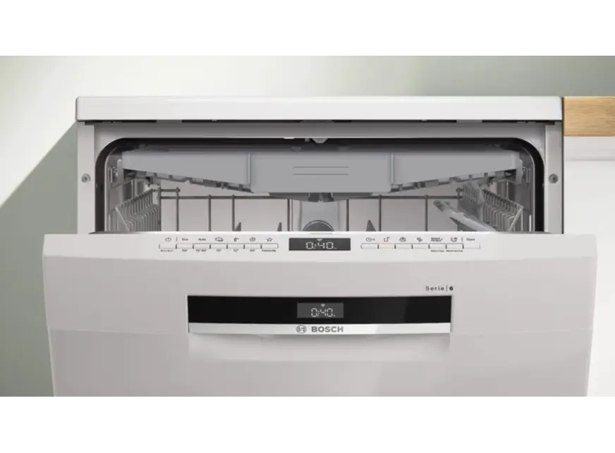 Bosch SMS6EMW38Q არის მე-6 სერიის პრემიუმ კლასის ჭურჭლის სარეცხი მანქანა, რომელიც აერთიანებს მაქსიმალურ ჰიგიენას, ენერგოეფექტურობასა და ინტელექტუალურ მართვას. მისი დახვეწილი თეთრი დიზაინი იდეალურად ერწყმის ნებისმიერი სტილის სამზარეულოს. მოწყობილობა აღჭურვილია EfficientDry ფუნქციით, რომელიც რეცხვის დასრულების შემდეგ ავტომატურად აღებს კარს, რაც უზრუნველყოფს ჭურჭლის ბუნებრივ და სრულყოფილ გაშრობას ზედმეტი ენერგიის ხარჯვის გარეშე.