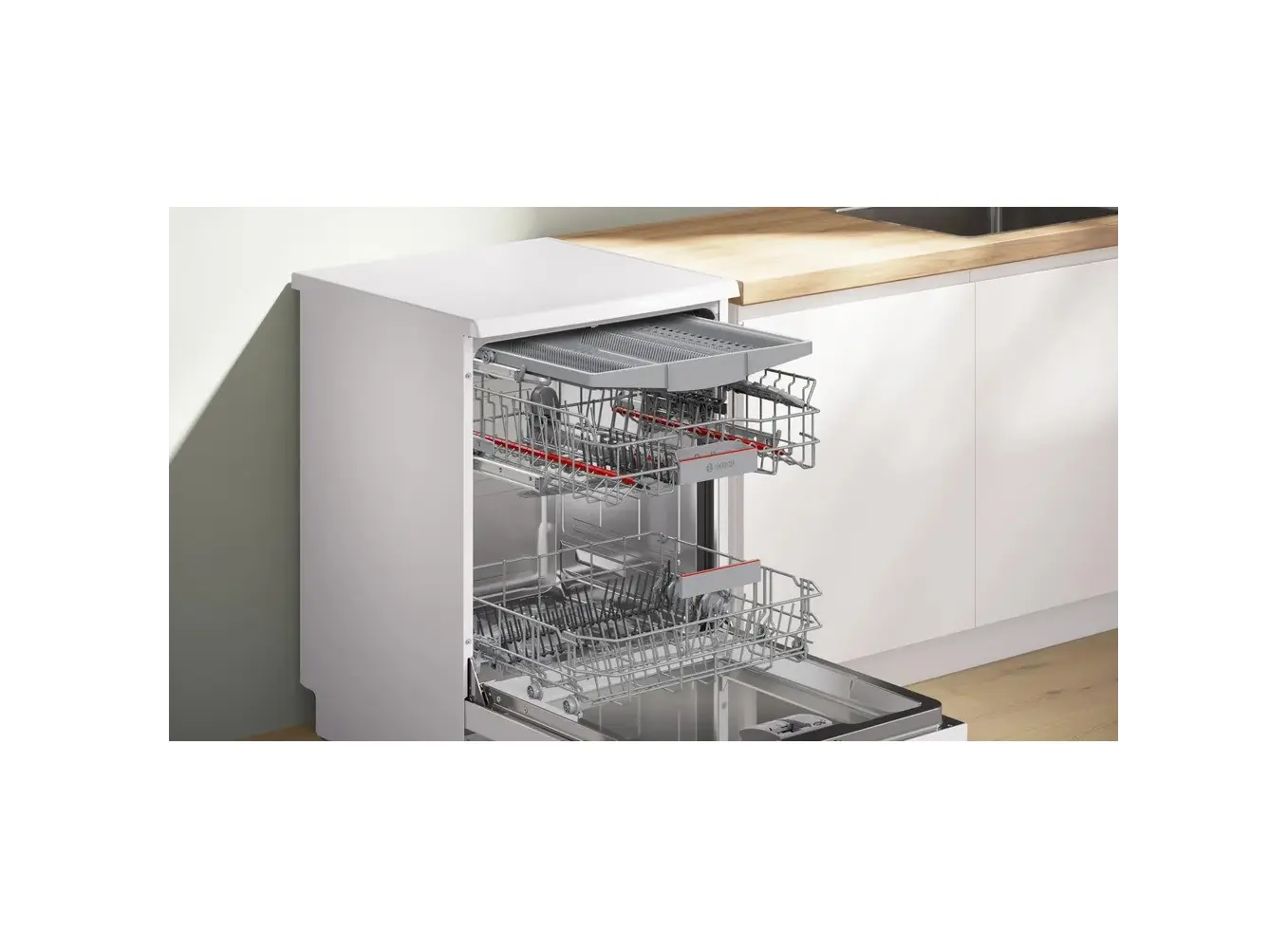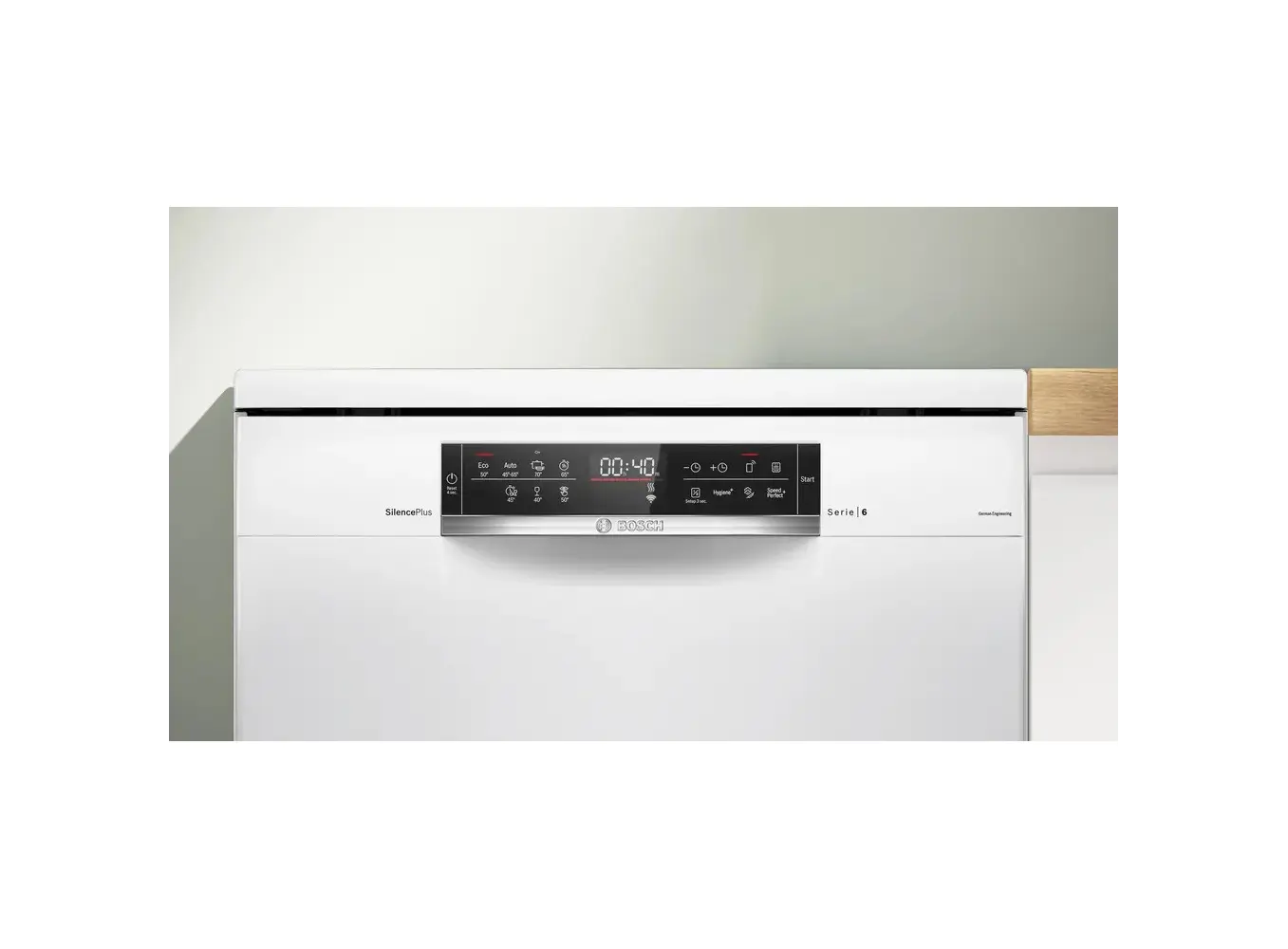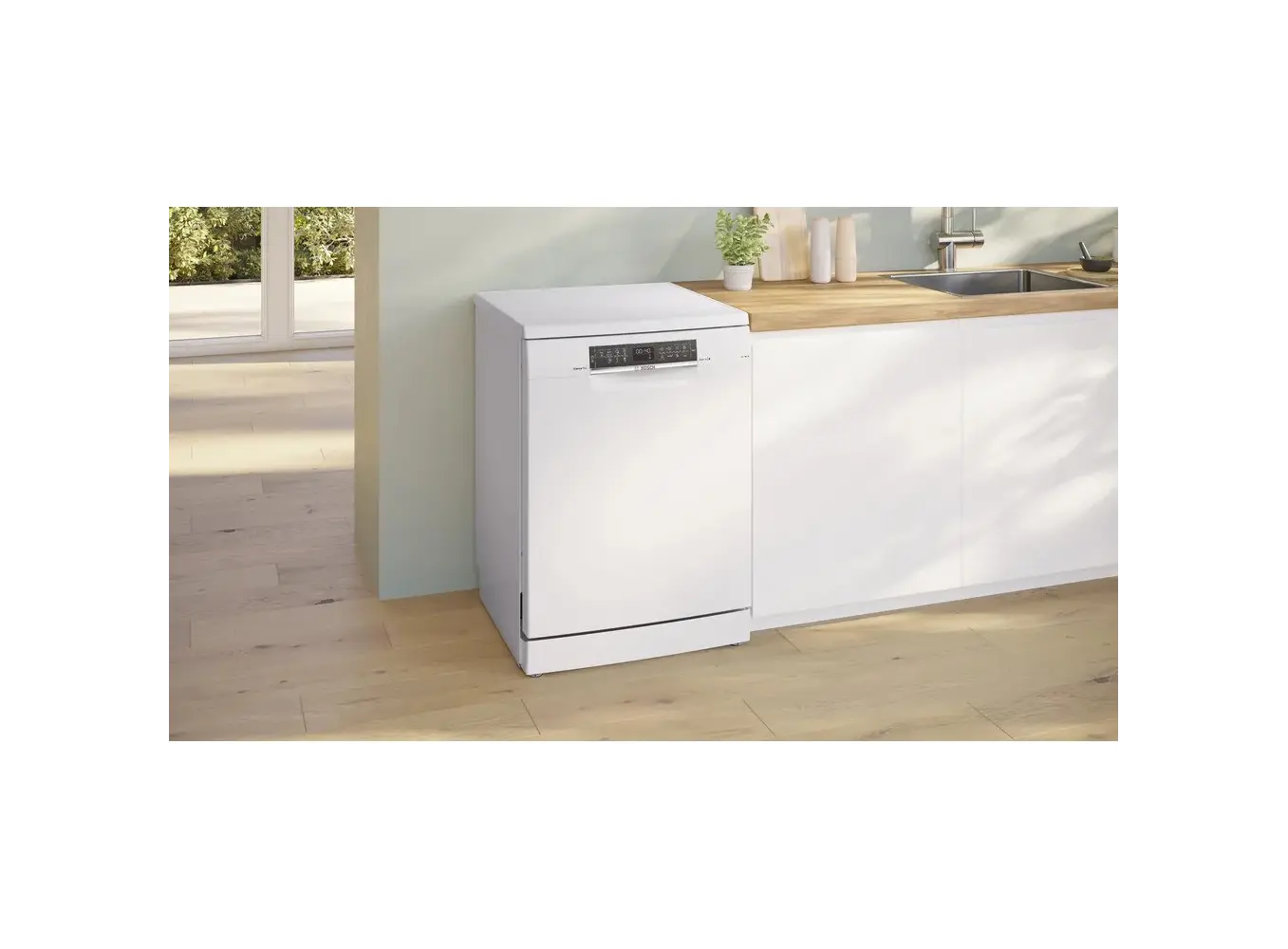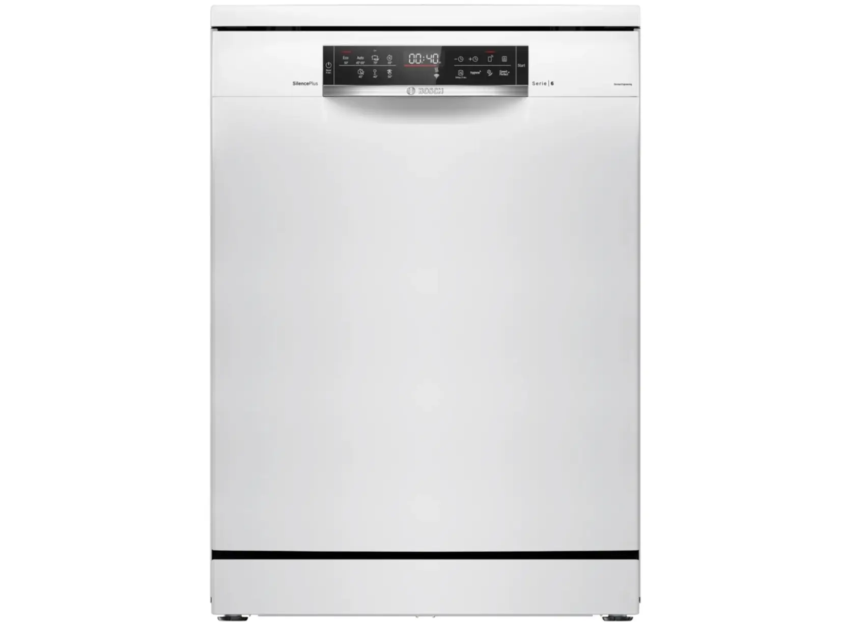 BOSCH SMS6EMW65Q წარმოადგენს Series 6 კლასის თავისუფლად მდგომ ჭურჭლის სარეცხ მანქანას, რომელიც აერთიანებს თანამედროვე ტექნოლოგიებსა და ენერგოეფექტურობას. მისი თეთრი დიზაინი და კომპაქტური ზომები (60x60x84.5 სმ) იდეალურია ნებისმიერი სამზარეულოსთვის. მოწყობილობა აღჭურვილია 13 კომპლექტიანი ტევადობითა და 3 რეგულირებადი სარეცხი კალათით, რაც უზრუნველყოფს მოქნილობას სხვადასხვა ტიპის ჭურჭლის განთავსებისთვის. 7 სარეცხი პროგრამა და დამატებითი ფუნქციები, როგორიცაა SpeedPerfect+ და ExtraDry, უზრუნველყოფენ სწრაფ და ეფექტურ წმენდას. Home Connect ფუნქცია საშუალებას გაძლევთ მართოთ მანქანა დისტანციურად, ხოლო AquaStop სისტემა იცავს გაჟონვისგან. მისი ენერგოეფექტურობის კლასი A და წყლის მოხმარება 6.7 ლიტრი თითო ციკლზე უზრუნველყოფს ეკონომიურ მუშაობას.