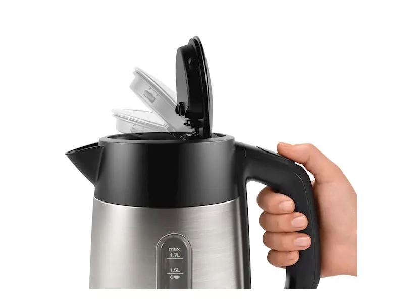 BOSCH TWK4P440 არის თანამედროვე და მძლავრი ელექტრო ჩაიდანი, რომელიც განკუთვნილია სწრაფი და კომფორტული წყლის დუღილისთვის. მისი 1.7 ლიტრიანი მოცულობა საკმარისია რამდენიმე ჭიქა ჩაის ან ყავის მოსამზადებლად. 2400 ვატიანი სიმძლავრე უზრუნველყოფს წყლის სწრაფ დუღილს, რაც ამცირებს ლოდინის დროს. ჩაიდანი აღჭურვილია უჟანგავი ფოლადის კორპუსით, რაც უზრუნველყოფს გამძლეობასა და ელეგანტურ იერსახეს. ორმხრივი წყლის დონის ინდიკატორი საშუალებას გაძლევთ მარტივად აკონტროლოთ წყლის რაოდენობა. ჩაიდნის სახურავი იხსნება ღილაკის დაჭერით, რაც ამარტივებს შევსებასა და გაწმენდას. მოწყობილობას აქვს სამი დონის უსაფრთხოების სისტემა: ავტომატური გამორთვა დუღილის შემდეგ, გადახურებისგან და მშრალი ჩართვისგან დაცვა, ასევე გამორთვა ბაზიდან აღებისას. ჩაიდნის ძირი 360 გრადუსით ბრუნავს, რაც უზრუნველყოფს მოხერხებულ გამოყენებას როგორც მარჯვენა, ასევე მარცხენა ხელით. კომპაქტური დიზაინი და სადენების შესანახი ადგილი უზრუნველყოფს სამზარეულოს სისუფთავესა და ორგანიზებას.