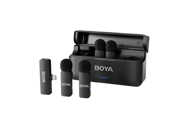 BOYA BY-V4U არის 4-არხიანი პორტატული უსადენო მიკროფონის სისტემა, რომელიც განკუთვნილია USB-C პორტის მქონე მობილური მოწყობილობებისთვის. ის მოიცავს ოთხ გადამცემს ჩაშენებული ომნიდირექციული მიკროფონებითა და ოთხარხიან მიმღებს, რომელიც პირდაპირ ერთდება თქვენს მოწყობილობაში. 2.4GHz ციფრული სიხშირის გამოყენებით, სისტემა უზრუნველყოფს სტაბილურ გადაცემას 200 მეტრამდე მანძილზე ღია სივრცეში. ორმაგი ხმაურის შემცირების ტექნოლოგია და ქარის დამცავი უზრუნველყოფს ხმაურიან გარემოში სუფთა ხმის ჩაწერას. თითოეული გადამცემი აღჭურვილია 360° მბრუნავი სამაგრით, რაც ამარტივებს მათ დამაგრებას. ჩაშენებული ბატარეები უზრუნველყოფს 6 საათამდე უწყვეტ მუშაობას, ხოლო პორტატული დამტენი ქეისი უზრუნველყოფს დამატებით 18 საათამდე მუშაობას. სისტემა თავსებადია სმარტფონებთან, პლანშეტებთან და სხვა USB-C პორტის მქონე მოწყობილობებთან, რაც იდეალურს ხდის მას კონტენტის შექმნისთვის, ვლოგინგისთვის, პოდკასტინგისთვისა და მობილური ჟურნალისტიკისთვის.