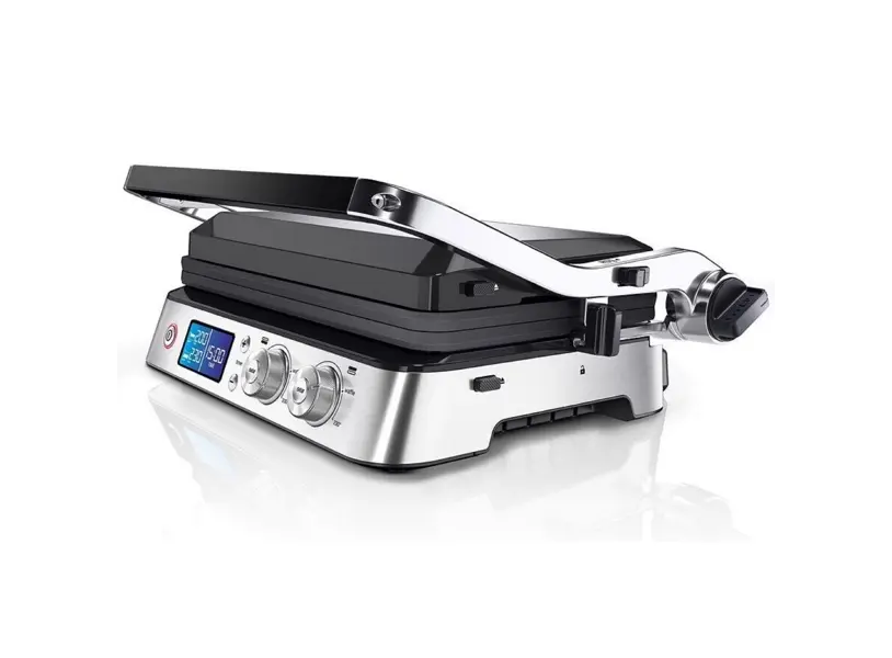 BRAUN CG9040 გრილი წარმოადგენს მრავალფუნქციურ და ენერგოეფექტურ მოწყობილობას, რომელიც იდეალურია სხვადასხვა ტიპის საკვების მოსამზადებლად. მისი 2000 ვატიანი სიმძლავრე და ჩაშენებული გათბობის ელემენტები უზრუნველყოფს სწრაფ და თანაბარ გათბობას, რაც ამცირებს მომზადების დროს და უზრუნველყოფს მაღალი ხარისხის შედეგს. გრილი აღჭურვილია 3 სხვადასხვა მომზადების პოზიციით: კონტაქტური, ღია და ღუმელის რეჟიმი, რაც უზრუნველყოფს მრავალფეროვან გამოყენებას. დამოუკიდებელი ტემპერატურის კონტროლი ორივე ფირფიტისთვის საშუალებას გაძლევთ მოამზადოთ სხვადასხვა ტიპის საკვები ერთდროულად. მაქსიმალური ტემპერატურა 250°C უზრუნველყოფს ხორცის იდეალურ შეწვას. გრილის ზედაპირი დაფარულია არაწებადი PTFE საფარით, რაც ამარტივებს გაწმენდას, ხოლო მოსახსნელი ცხიმის უჯრა ხელს უწყობს ჯანსაღი საკვების მომზადებას. BRAUN CG9040 გრილი არის საიმედო და ფუნქციური არჩევანი მათთვის, ვინც ეძებს ხარისხიან და მრავალფუნქციურ სამზარეულო მოწყობილობას.