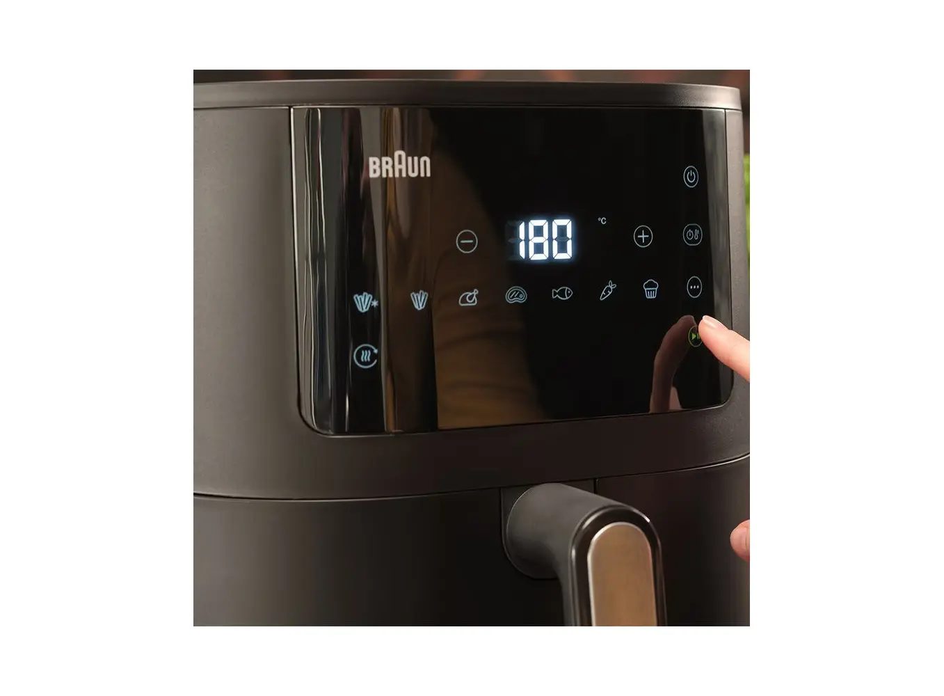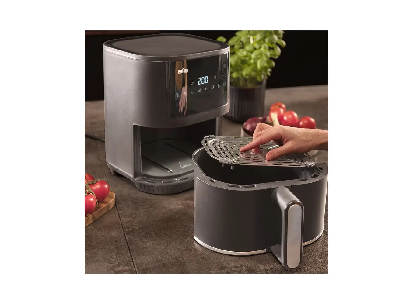 აეროგრილი Braun HF3030 აერთიანებს თანამედროვე ტექნოლოგიასა და პრაქტიკულობას, რაც საშუალებას გაძლევთ მოამზადოთ ჯანსაღი და გემრიელი კერძები მინიმალური ცხიმით. RealAir ტექნოლოგია უზრუნველყოფს ცხელი ჰაერის თანაბარ ცირკულაციას, რაც იძლევა ხრაშუნა და რბილი ტექსტურის კომბინაციას. მოწყობილობა აღჭურვილია 4.3 ლიტრიანი უჯრით, რაც საკმარისია 1.2 კგ ქათმის ან 1 კგ გაყინული კარტოფილის მოსამზადებლად. 8 ავტომატური პროგრამა და რეგულირებადი ტემპერატურა 80-დან 200°C-მდე უზრუნველყოფს მრავალფეროვან მომზადების რეჟიმებს. 1500 ვატიანი სიმძლავრე და ენერგოეფექტურობა საშუალებას გაძლევთ დაზოგოთ დრო და ენერგია. კომპაქტური დიზაინი და მარტივი წმენდა ხდის Braun HF3030-ს იდეალურ არჩევანს ყოველდღიური გამოყენებისთვის.