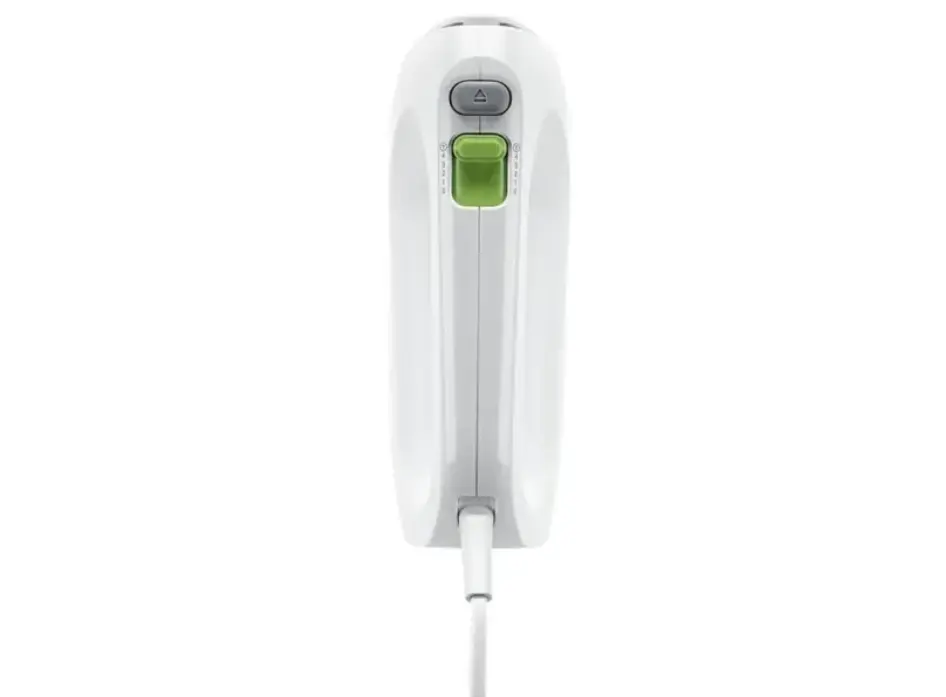 მიქსერი BRAUN HM1010WH არის კომპაქტური და მძლავრი მოწყობილობა, რომელიც იდეალურია ყოველდღიური საკონდიტრო და კულინარიული ამოცანებისთვის. მისი 400 ვატიანი ძრავი უზრუნველყოფს სწრაფ და ეფექტურ მუშაობას, ხოლო 4 სიჩქარე და დამატებითი ტურბო რეჟიმი საშუალებას გაძლევთ ზუსტად და მარტივად მოამზადოთ სხვადასხვა რეცეპტები. მოწყობილობა აღჭურვილია EasyClick სისტემით, რაც უზრუნველყოფს ბითერებისა და ცომის კაუჭების მარტივ და სწრაფ შეცვლას. მისი მსუბუქი და ერგონომიული დიზაინი უზრუნველყოფს კომფორტულ გამოყენებას, ხოლო კაბელის მოსახერხებელი შესაფუთი სისტემა ამარტივებს შენახვას. კომპლექტში შედის უჟანგავი ფოლადის ბითერები და ცომის კაუჭები, რომლებიც უსაფრთხოა ჭურჭლის სარეცხ მანქანაში რეცხვისთვის. BRAUN HM1010WH არის სანდო და მრავალფუნქციური არჩევანი ნებისმიერი სამზარეულოსთვის.