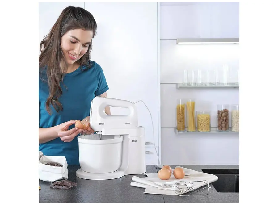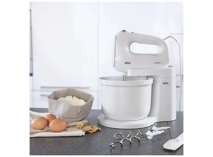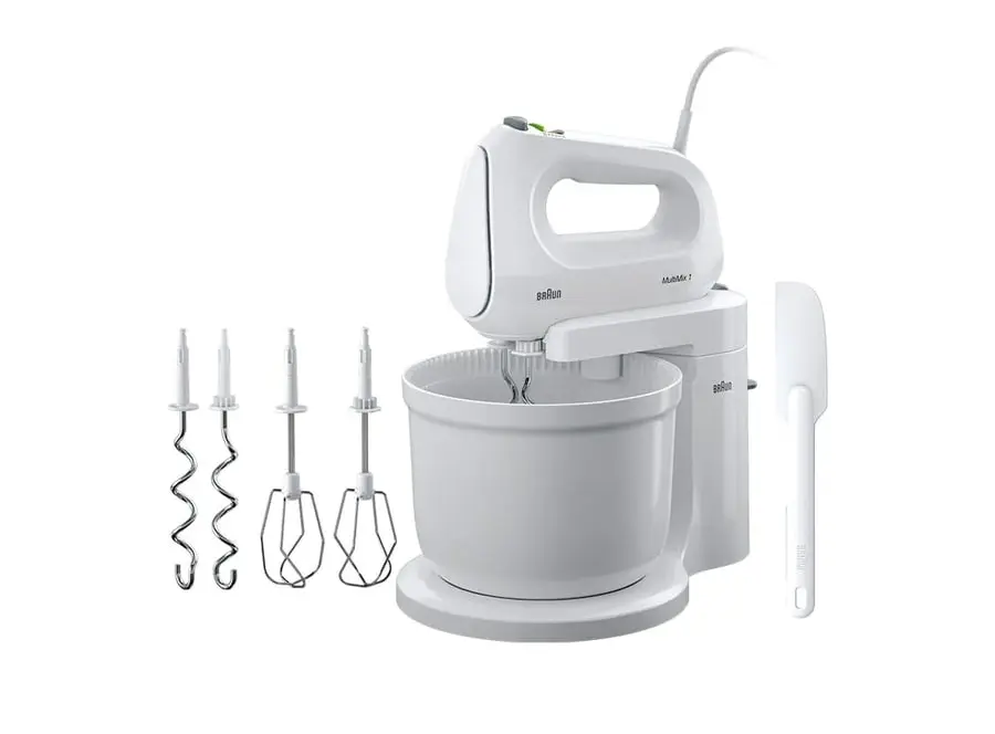 მიქსერი BRAUN HM1070WH წარმოადგენს მრავალფუნქციურ სამზარეულოს მოწყობილობას, რომელიც აერთიანებს ხელით და სტაციონარულ მიქსერს ერთ კომპაქტურ დიზაინში. მისი 400 ვატიანი სიმძლავრე და 4 სიჩქარის რეჟიმი, დამატებითი Turbo ფუნქციით, უზრუნველყოფს სხვადასხვა ინგრედიენტის სწრაფ და ეფექტურ შერევას. 3 ლიტრიანი თასი იდეალურია დიდი რაოდენობის ცომის ან კრემის მოსამზადებლად. მოწყობილობა აღჭურვილია ორ ბრტყელ ბატერსა და ორ ცომის კაუჭით, რაც მრავალფეროვან გამოყენებას უზრუნველყოფს. EasyClick სისტემა ამარტივებს დანამატების შეცვლას, ხოლო Pop-up Head ფუნქცია ხელს უწყობს ინგრედიენტების მარტივ დამატებას. ერგონომიული სახელური და კომპაქტური დიზაინი უზრუნველყოფს კომფორტულ გამოყენებას და შენახვას. BRAUN HM1070WH არის იდეალური არჩევანი მათთვის, ვინც ეძებს მოქნილ და ეფექტურ მიქსერს ყოველდღიური გამოყენებისთვის.