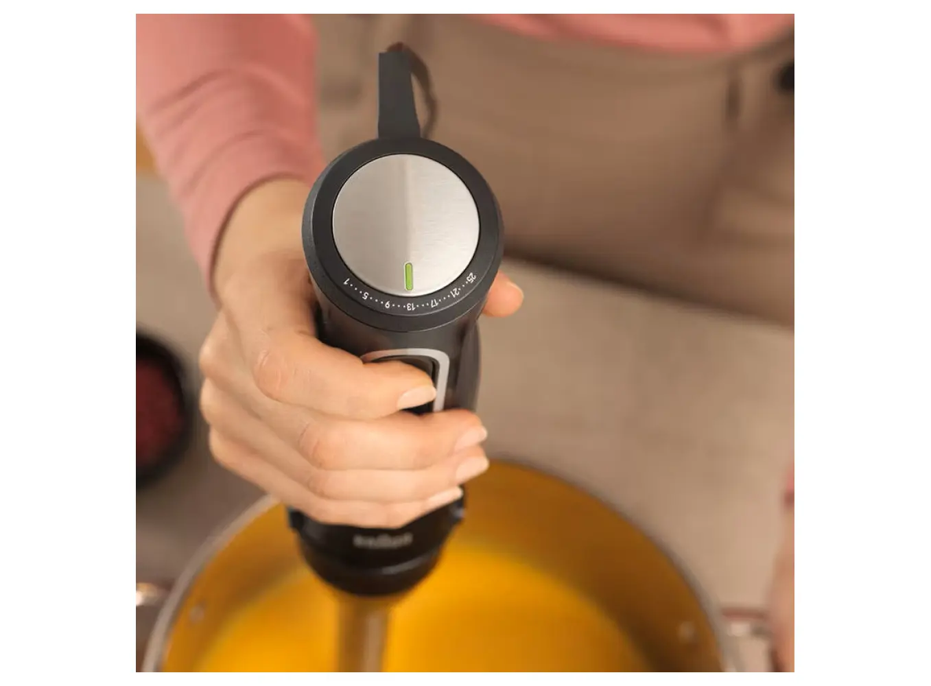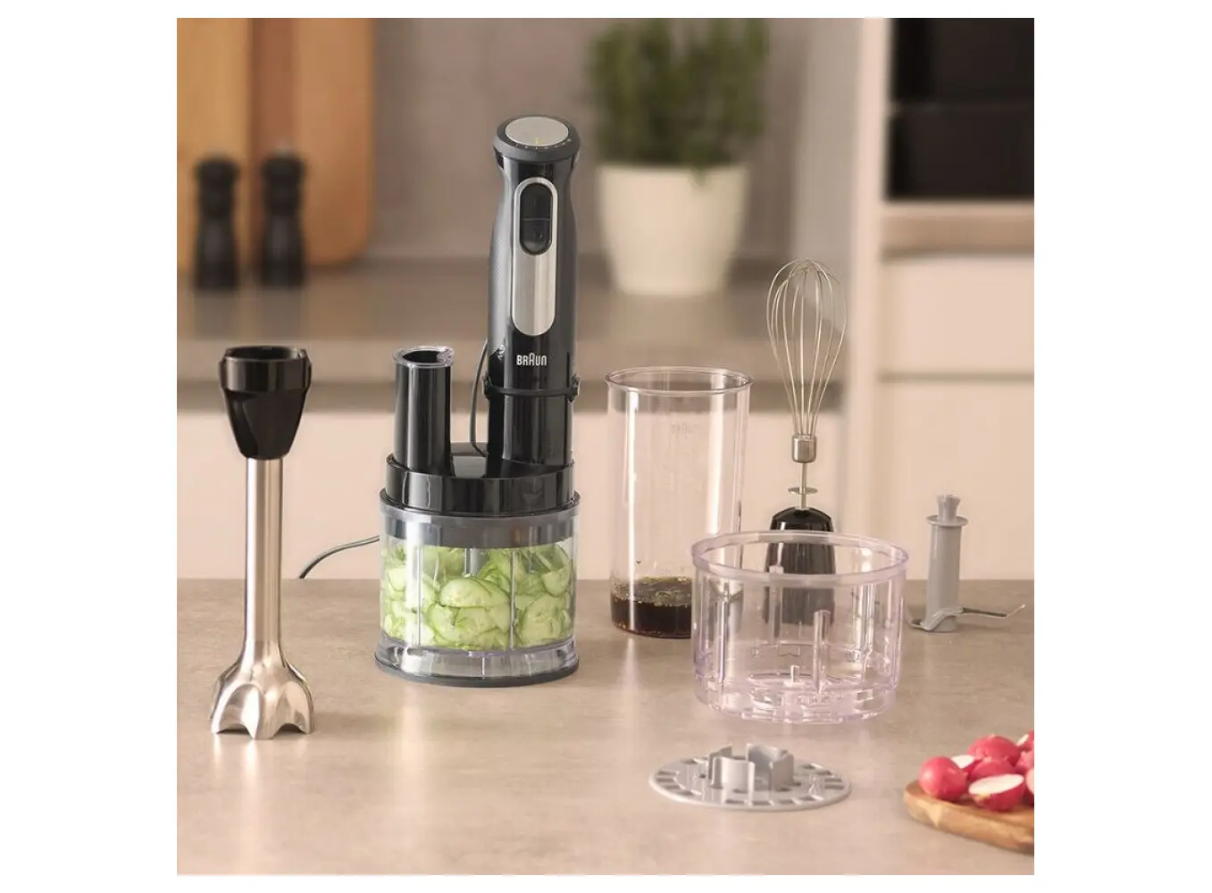 ბლენდერი BRAUN MQ55755MBK არის მრავალფუნქციური სამზარეულო მოწყობილობა, რომელიც აერთიანებს ძლიერ ძრავსა და თანამედროვე ტექნოლოგიებს. იგი აღჭურვილია ActiveBlade სისტემით, რომელიც უზრუნველყოფს დანების მაქსიმალურ მოქნილობას და სწრაფად აქცევს ინგრედიენტებს ერთგვაროვან მასად. SmartSpeed ფუნქციის წყალობით შეგიძლიათ ერთი ღილაკის საშუალებით აკონტროლოთ სიჩქარე და მიაღწიოთ სასურველ შედეგს სხვადასხვა კერძისთვის. კომპლექტში შედის მრავალფეროვანი აქსესუარები – დასაქუცმაცებელი, საწური და სათასე, რაც ბლენდერს აქცევს შეუცვლელ დამხმარედ ყოველდღიურ სამზარეულოში. მოსახერხებელი დიზაინი, ადვილად გასაწმენდი ნაწილები და BRAUN-ის სანდოობა უზრუნველყოფს ხანგრძლივ და კომფორტულ გამოყენებას.