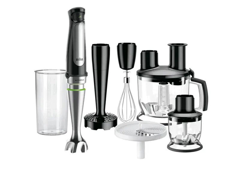ხელის ბლენდერი Braun MQ7087X იდეალური არჩევანია სწრაფი და ეფექტური სამზარეულოსთვის. მოდელი აღჭურვილია ძლიერი 1000 ვატიანი ძრავით, რომელიც ადვილად უმკლავდება სხვადასხვა პროდუქტს. უნიკალური ActiveBlade ტექნოლოგია უზრუნველყოფს პირების ვერტიკალურ მოძრაობას, რაც მნიშვნელოვნად ზრდის შერევის ეფექტურობას. SplashControl სისტემა იცავს შპრეცებისგან და ინარჩუნებს სისუფთავეს. კომპლექტში მოყვება მრავალფუნქციური აქსესუარები, რომლებიც საშუალებას გაძლევთ შეურიოთ, დაჭრათ, დაფქვათ და ათქვიფოთ სხვადასხვა ინგრედიენტები. მარტივი გაწმენდა და მოსახერხებელი დიზაინი Braun MQ7087X-ს აქცევს შეუცვლელ დამხმარედ თქვენს სამზარეულოში.