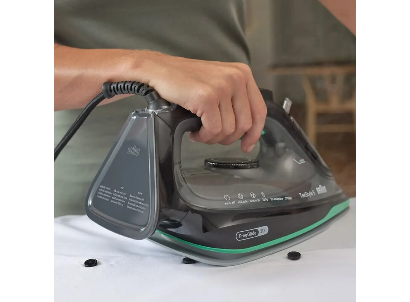 უთო BRAUN SI5277GR არის ძლიერი და საიმედო მოწყობილობა, რომელიც თქვენს ყოველდღიურ დაუთოებას მაქსიმალურად მარტივს და კომფორტულს ხდის. FreeGlide 3D ფირფიტა უზრუნველყოფს შეუფერხებელ სრიალს ნებისმიერი მიმართულებით, მათ შორის ღილაკებსა და ნაკერებზე, რაც დაზოგავს დროს და ძალისხმევას. ძლიერი ორთქლის სისტემა ეფექტურად აშორებს ღრმა ნაოჭებს და უზრუნველყოფს ქსოვილების იდეალურ მდგომარეობას. სიზუსტის წვერი ხელს უწყობს რთულად მისადგომი ადგილების დამუშავებას, ხოლო ანტი-კალციუმის სისტემა იცავს მოწყობილობას დანალექისგან და ახანგრძლივებს მის სიცოცხლეს. BRAUN SI5277GR გამოირჩევა მსუბუქი კონსტრუქციითა და კომფორტული დიზაინით, რაც მას ყოველდღიური გამოყენებისთვის სრულყოფილ არჩევანად აქცევს.