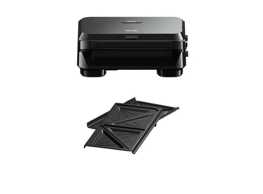 ტოსტერი BRAUN SM5000 – მრავალფუნქციური და კომპაქტური მოწყობილობაა, რომელიც იდეალურია სწრაფი და ჯანსაღი საუზმის მოსამზადებლად. 800 ვატიანი სიმძლავრე უზრუნველყოფს სწრაფად გათბობას და ეფექტურ მუშაობას. მოწყობილობა აღჭურვილია მოხსნადი, ორმაგი არაწებოვანი საფარით დაფარული ფირფიტებით, რომლებიც ადვილად იწმინდება და შესაძლებელია ჭურჭლის სარეცხ მანქანაში გარეცხვა. სპეციალური დიზაინი უზრუნველყოფს სენდვიჩების იდეალურ დაბრაწვას და შიგთავსის სრულად შეკავებას. ვერტიკალური შენახვის შესაძლებლობა დაზოგავს სივრცეს სამზარეულოში. BRAUN SM5000 – შეუცვლელი ასისტენტია ყოველდღიური სწრაფი და გემრიელი კერძების მოსამზადებლად.
