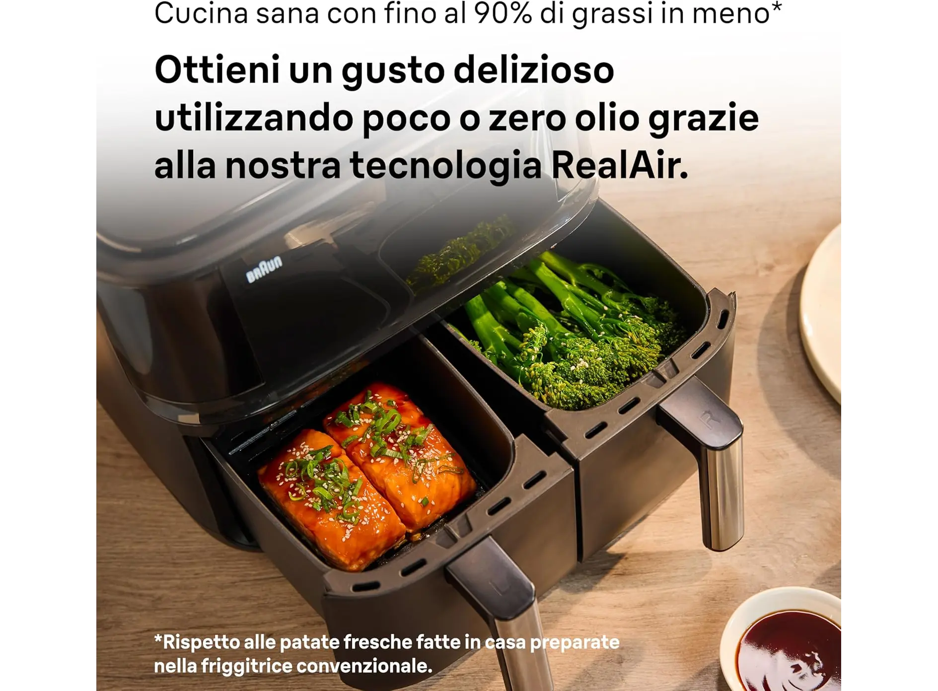 შეიძინეთ კომპაქტური და მრავალფუნქციური Braun MultiFry 3 აეროგრილი, რომელიც იდეალური გამოსავალია ჯანსაღი კვების მოყვარულთათვის. 1500 ვატიანი სიმძლავრე და ცხელი ჰაერის სწრაფი ცირკულაცია უზრუნველყოფს კერძების მომზადებას ზეთის გარეშე ან მისი მინიმალური გამოყენებით, რაც საკვებს ხდის უფრო სასარგებლოს და ნაკლებკალორიულს, გემოს დაკარგვის გარეშე.