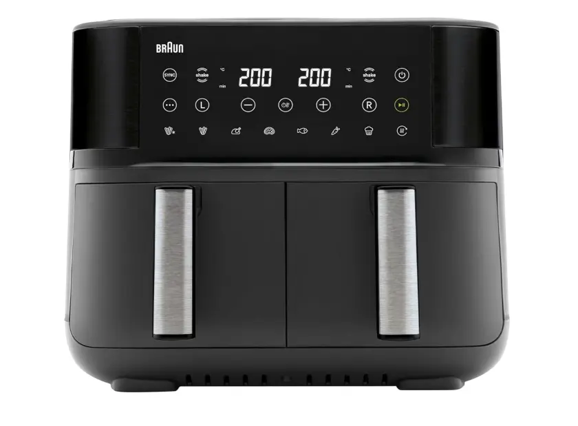 აეროგრილი BRAUN TD3030IBK არის თანამედროვე და მრავალფუნქციური სამზარეულოს მოწყობილობა, რომელიც საშუალებას გაძლევთ ჯანსაღად და სწრაფად მოამზადოთ გემრიელი კერძები. ძლიერი გათბობის სისტემა და ცხელი ჰაერის ცირკულაციის ტექნოლოგია უზრუნველყოფს საკვების თანაბარ მომზადებას, მინიმალური ცხიმის გამოყენებით. მისი წყალობით კერძები რჩება ხრაშუნა გარედან და რბილი შიგნით. მოწყობილობა აღჭურვილია მარტივი მართვის პანელით, სხვადასხვა პროგრამითა და ტემპერატურის კონტროლის შესაძლებლობით, რაც ზრდის თქვენი კულინარიული ექსპერიმენტების მრავალფეროვნებას. დიდი მოცულობა საშუალებას გაძლევთ ერთდროულად მოამზადოთ საკვები მთელი ოჯახისათვის. მოხსნადი და მარტივად გასაწმენდი ნაწილები უზრუნველყოფს ყოველდღიურ მოხმარებაში კომფორტს და ჰიგიენას. ელეგანტური შავი დიზაინი BRAUN TD3030IBK-ს აქცევს არა მხოლოდ პრაქტიკულ, არამედ ესთეტიკურად მიმზიდველ მოწყობილობად, რომელიც იდეალურად ერწყმის თანამედროვე სამზარეულოს ინტერიერს.