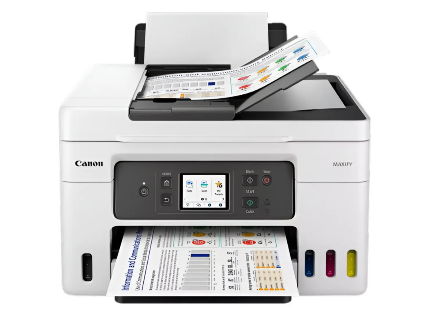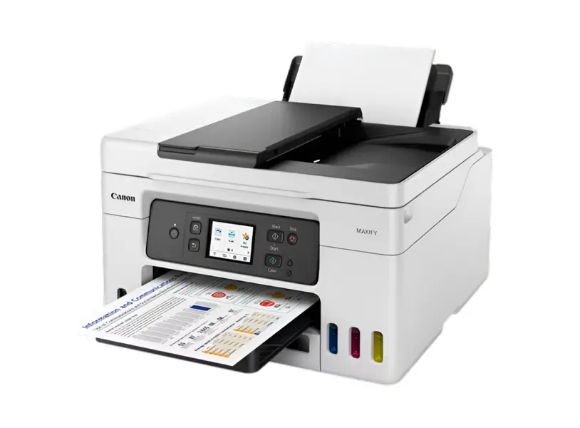 Canon MAXIFY GX4040 არის მულტიფუნქციური ფერადი ინკჯეთ პრინტერი, რომელიც იდეალურია მცირე და საშუალო ოფისებისთვის. იგი აერთიანებს ბეჭდვის, სკანირების, ასლის გადაღებისა და ფაქსის ფუნქციებს ერთ მოწყობილობაში. ბეჭდვის სიჩქარე შეადგენს 18 შ./წთ (შავი) და 13 შ./წთ (ფერადი), რაც ეფექტური სამუშაოს საწინდარია. ინტეგრირებული Wi-Fi, USB და LAN კავშირები უზრუნველყოფს მოქნილობას და მარტივ ქსელურ ინტეგრაციას. პროექტორი იყენებს რეზერვუარებზე დაფუძნებულ მელნის სისტემას, რაც ამცირებს ხარჯს და ზრდის პროდუქтивობას. დიდი ტევადობის ქაღალდის უჯრა და ავტომატური დოკუმენტების მიმწოდებელი კიდევ უფრო ამარტივებს დოკუმენტებთან მუშაობას. თანამედროვე თეთრი დიზაინი შეერწყმება ნებისმიერი ოფისის ინტერიერს.