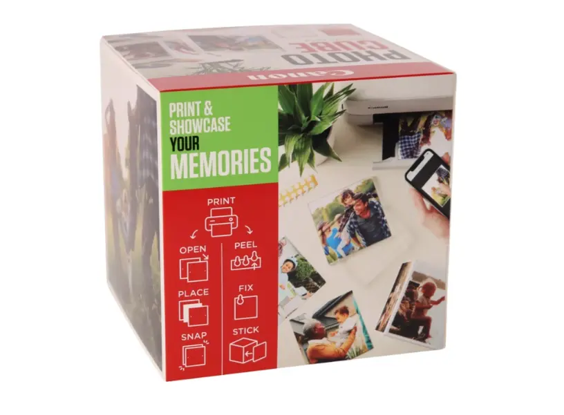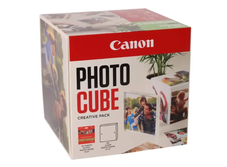 Canon Photo Cube Creative Pack (PP‑201 5 × 5”) წარმოადგენს უნიკალურ ფოტოპაკეტს, რომელიც შედგება თეთრი Photo Cube ყუთისა, 40 ცალი 5 × 5 დიუმიანი (13 × 13 სმ) Photo Paper Plus Glossy II ქაღალდისა და 13 × 13 სმ ზომის XLBoom აკრილის მაგნიტური ჩარჩოსგან და ორმხრივი ლენტით. მოსულა მომხმარებლებისთვის იდეალურია თქვენი სასურველი კადრების შენახვა და დეკორაცია ერთი დიზაინერული კომპლექტის ფარგლებში. ფოტოს ბმაზე შეგიძლიათ განათავსოთ ჭერის გარდა სახლის ნებისმიერ წერტილში. კომპაქტური, საჩუქრისთვისაც შესაფერისი ზომა (დაახლოებით 14 × 14 × 14 სმ) წარმოადგენს როგორც ფუნქციურ, ასევე ესთეტიკურ გადაწყვეტილებას ოჯახისა და მეგობრების ფოტოების შესანახად და გამოსაჩენად.