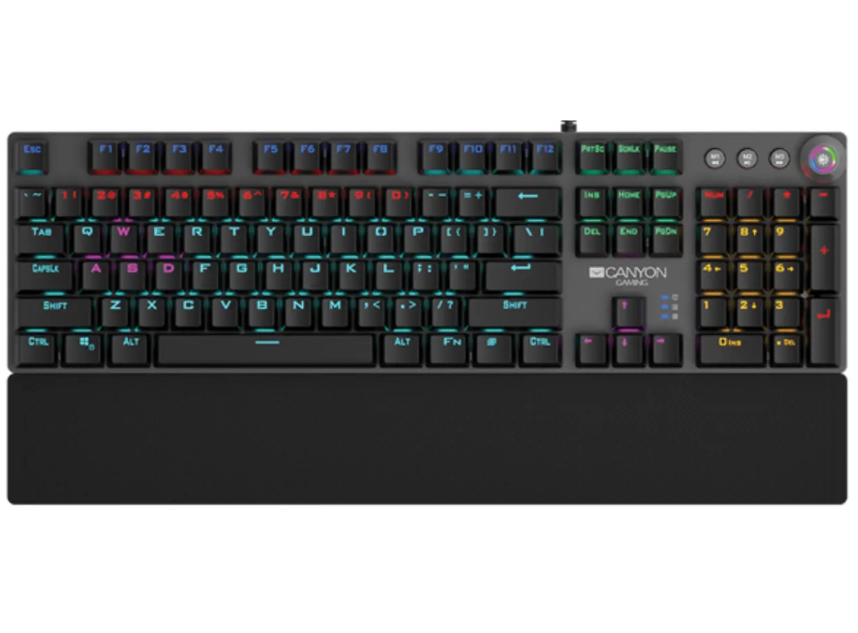 კლავიატურა CANYON Nightfall GK-7, Wired Gaming Keyboard,Black 104 mechanical switches,60 million times key life, 22 types of lights