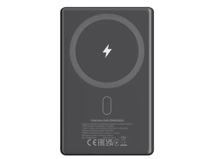 პორტატული დამტენი CANYON power bank OnPower 505 slim Magnetic 5000 Dark Gray (CNS-CPB505DG)