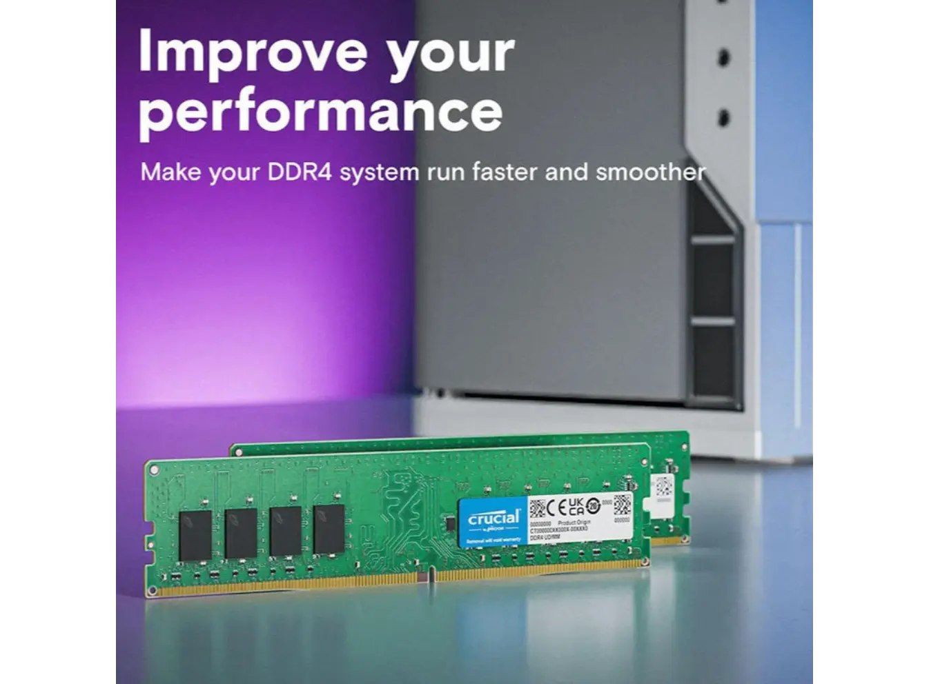 - RAM მოდულის ზომა: UDIMM, Unbuffered, Non‑ECC, 288-pin DDR4 Desktop module