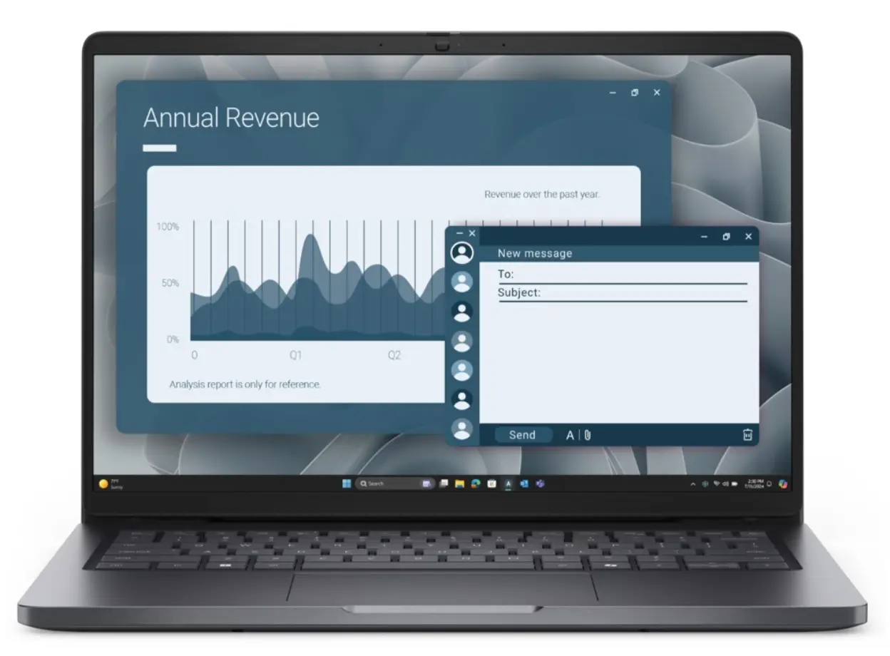 ნოუთბუქი Dell Pro 14 PC14255 არის ბიზნეს-კლასის კომპაქტური და ძლიერი მოწყობილობა, რომელიც შექმნილია პროფესიონალებისთვის, ვისაც სჭირდება სისწრაფე, საიმედოობა და უსაფრთხოება. 14 დიუმიანი FHD+ ეკრანი უზრუნველყოფს მკვეთრ და ნათელ გამოსახულებას, რაც კომფორტულია როგორც სამუშაო პროცესისთვის, ისე მულტიმედიური კონტენტის მოხმარებისთვის. მოწყობილობა აღჭურვილია უახლესი AMD Ryzen AI 7 PRO 350 პროცესორითა და 16GB ოპერატიული მეხსიერებით, რაც იძლევა შეუფერხებელ მუშაობას მრავალამოცანიან რეჟიმში. 1TB SSD იძლევა საკმარის საცავსა და მაღალ სიჩქარეს ფაილებთან მუშაობისას. AMD Radeon 860M გრაფიკული ბარათი უზრუნველყოფს ხარისხიან ვიზუალურ გამოცდილებას, ხოლო თითის ანაბეჭდის სენსორი და IR კამერა ზრდის უსაფრთხოებას. მაღალი ხარისხის მიკროფონი, Wi-Fi და Bluetooth გაძლევთ კომფორტულ კომუნიკაციასა და სტაბილურ კავშირს. განათებული კლავიატურა უზრუნველყოფს მოხერხებულობას ნებისმიერ პირობებში, ხოლო Windows 11 Pro ქმნის თანამედროვე და დაცულ სამუშაო გარემოს. Dell Pro 14 არის საუკეთესო არჩევანი მათთვის, ვინც ეძებს კომპაქტურ, სტილურ და სანდო ნოუთბუქს.