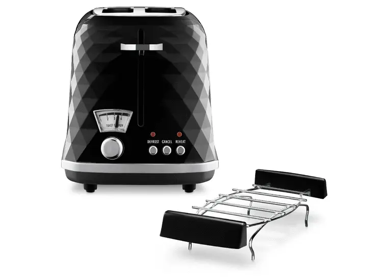 ტოსტერი Delonghi CTJ2103BK აერთიანებს იტალიურ დიზაინსა და ფუნქციონალურობას. მისი უნიკალური ბრილიანტისებური ზედაპირი და კომპაქტური ზომა (31x18x20 სმ) იდეალურია ნებისმიერი სამზარეულოსთვის. 900 ვატიანი სიმძლავრე უზრუნველყოფს სწრაფ და თანაბარ ტოსტირებას. მოწყობილობა აღჭურვილია 6 დონის ყავისფრად შემწვარი რეგულაციით, რაც საშუალებას გაძლევთ მოირგოთ ტოსტირება თქვენი გემოვნების შესაბამისად. დამატებითი ფუნქციები მოიცავს გალღობის, ხელახლა გაცხელების და გაუქმების რეჟიმებს. მაღალი აწევის მექანიზმი ამარტივებს მცირე ზომის პურის ნაჭრების ამოღებას. მოსახსნელი ნამცეცების უჯრა უზრუნველყოფს მარტივ წმენდას. Delonghi CTJ2103BK წარმოადგენს სტილისა და პრაქტიკულობის იდეალურ შერწყმას თქვენი ყოველდღიური საუზმისთვის.