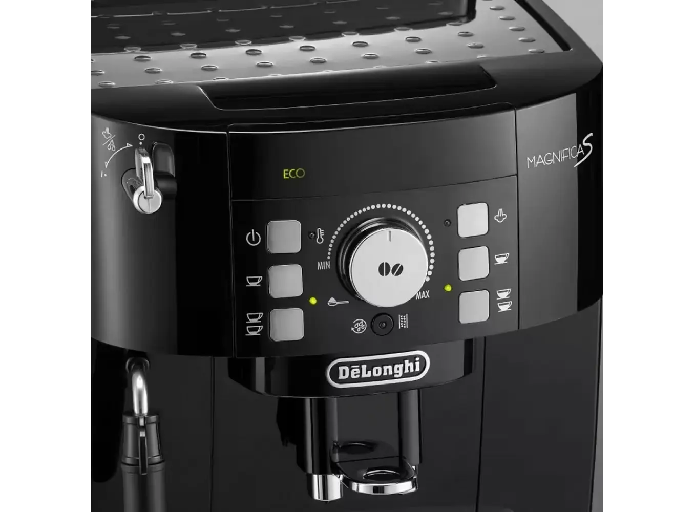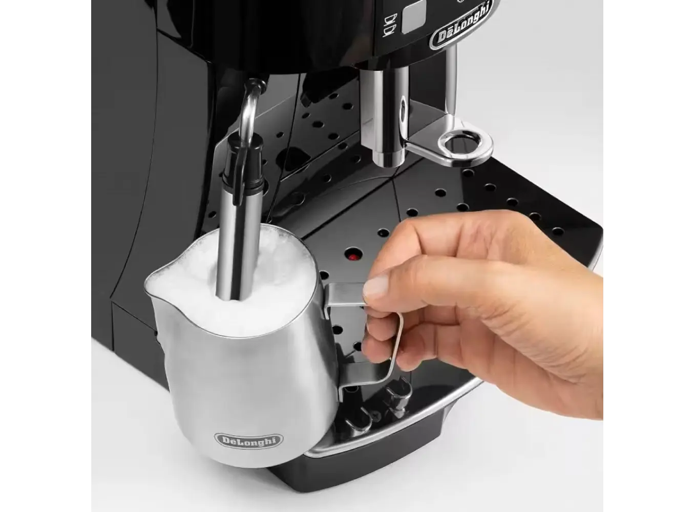 ყავის აპარატი Delonghi ECAM22.117.B არის პრაქტიკული და ფუნქციური ავტომატური მოდელი, რომელიც ყოველდღიურად გაძლევთ საშუალებას დატკბეთ არომატული და ხარისხიანი ყავით. 15 ბარის წნევა უზრუნველყოფს ყავის მდიდარ გემოსა და სურნელს, ხოლო ინტეგრირებული წისქვილი საშუალებას გაძლევთ გამოიყენოთ მარცვლოვანი ყავა, ასევე დაფქული ყავაც. მოწყობილობა აღჭურვილია მარტივი და ინტუიციური კონტროლის პანელით, სადაც შეგიძლიათ მოარგოთ სასმელის სიმაგრე, მოცულობა და ტემპერატურა თქვენი სურვილის მიხედვით. Delonghi ECAM22.117.B-ს აქვს „Cappuccino System“, რომელიც ქმნის ხავერდოვან ქაფს, იდეალურ კაპუჩინოსა და ლატესთვის. ავტომატური გაწმენდისა და დეკალციფიკაციის ფუნქციები ხელს უწყობს აპარატის ხანგრძლივ და გამართულ მუშაობას. ელეგანტური შავი დიზაინი კი მას იდეალურ არჩევანად აქცევს ნებისმიერი სახლის ან ოფისის ინტერიერისთვის.
