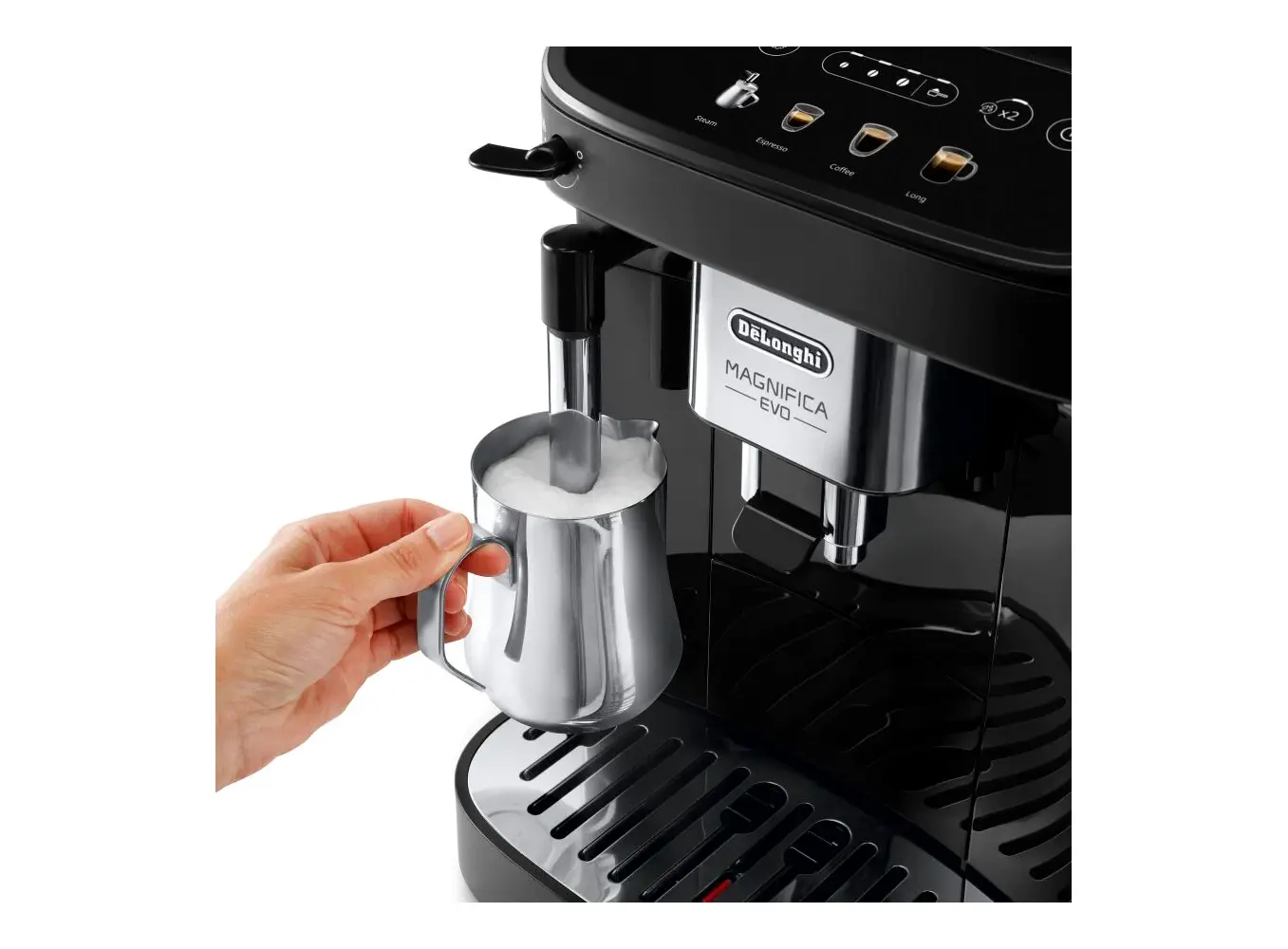 ყავის აპარატი Delonghi ECAM290.21.B არის სრულად ავტომატური მოწყობილობა, რომელიც იდეალურია მათთვის, ვისაც სურს ყოველდღე ისიამოვნოს სურნელოვანი და მდიდარი ყავით. აპარატი აღჭურვილია ინტუიციური კონტროლის პანელით, რომლის საშუალებითაც მარტივად შეგიძლიათ მოამზადოთ ესპრესო, ლატე ან სხვა სასურველი სასმელი. 15 ბარის წნევა და მაღალი ხარისხის წისქვილი უზრუნველყოფს ყავის მარცვლების სრულფასოვან დაფქვასა და არომატის გახსნას. Delonghi ECAM290.21.B თავსებადია როგორც მარცვლოვან, ასევე დაფქულ ყავასთან, რაც მომხმარებელს მეტ თავისუფლებას აძლევს. ავტომატური გაწმენდის და დეკალციფიკაციის ფუნქციები ამარტივებს ყოველდღიურ მოვლას, ხოლო კომპაქტური შავი დიზაინი მარტივად ერწყმის თანამედროვე ინტერიერს. ეს მოდელი იდეალური არჩევანია ოჯახებისთვის და მცირე ოფისებისთვის, ვისაც სურს კომფორტი და ხარისხი ერთ მოწყობილობაში.