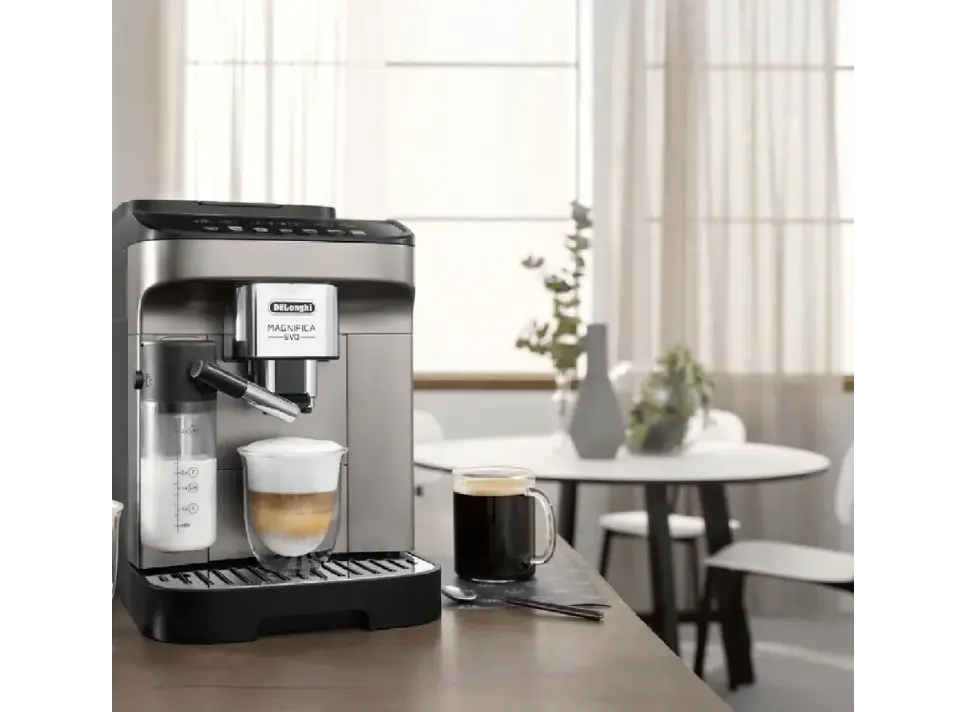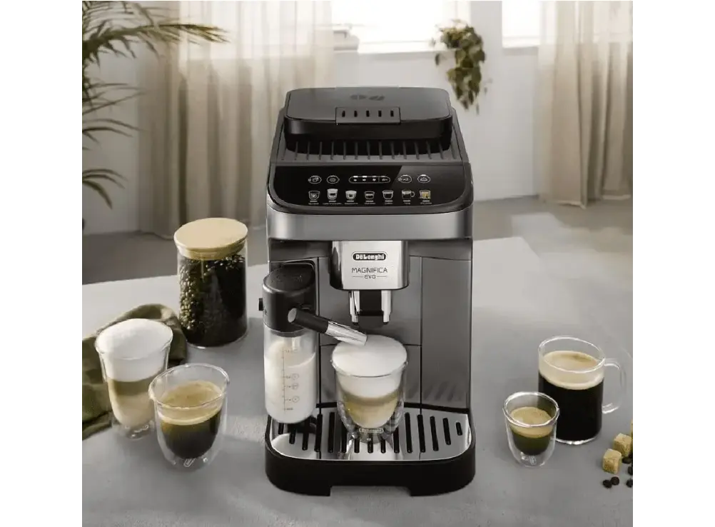 ყავის აპარატი DeLonghi ECAM290.81.TB წარმოადგენს სრულად ავტომატურ მოდელს, რომელიც აერთიანებს დახვეწილ დიზაინს, სიმარტივეს და პროფესიონალური ყავის მომზადების შესაძლებლობას. მოწყობილობა აღჭურვილია LatteCrema Hot სისტემით, რომელიც ქმნის ნაზ და მდგრად რძის ქაფს იდეალური კაპუჩინოსა და ლატესთვის. ინტუიციური Soft Touch კონტროლის პანელი და ციფრული ეკრანი უზრუნველყოფს მარტივ მართვას და სასმელის პერსონალიზაციას. 15 ბარიანი წნევა და 1450 ვტ სიმძლავრე იძლევა მდიდარ გემოს და არომატს ყოველი ფინჯანისთვის. ავტომატური გაწმენდის და გაკალცების რეჟიმები უზრუნველყოფს მარტივ მოვლას, ხოლო ენერგოეფექტური ფუნქციები ამცირებს ელექტროენერგიის ხარჯს. მისი ელეგანტური მეტალის ფერი და კომპაქტური ფორმა იდეალურად შეეფერება ნებისმიერ სამზარეულოს ინტერიერს.