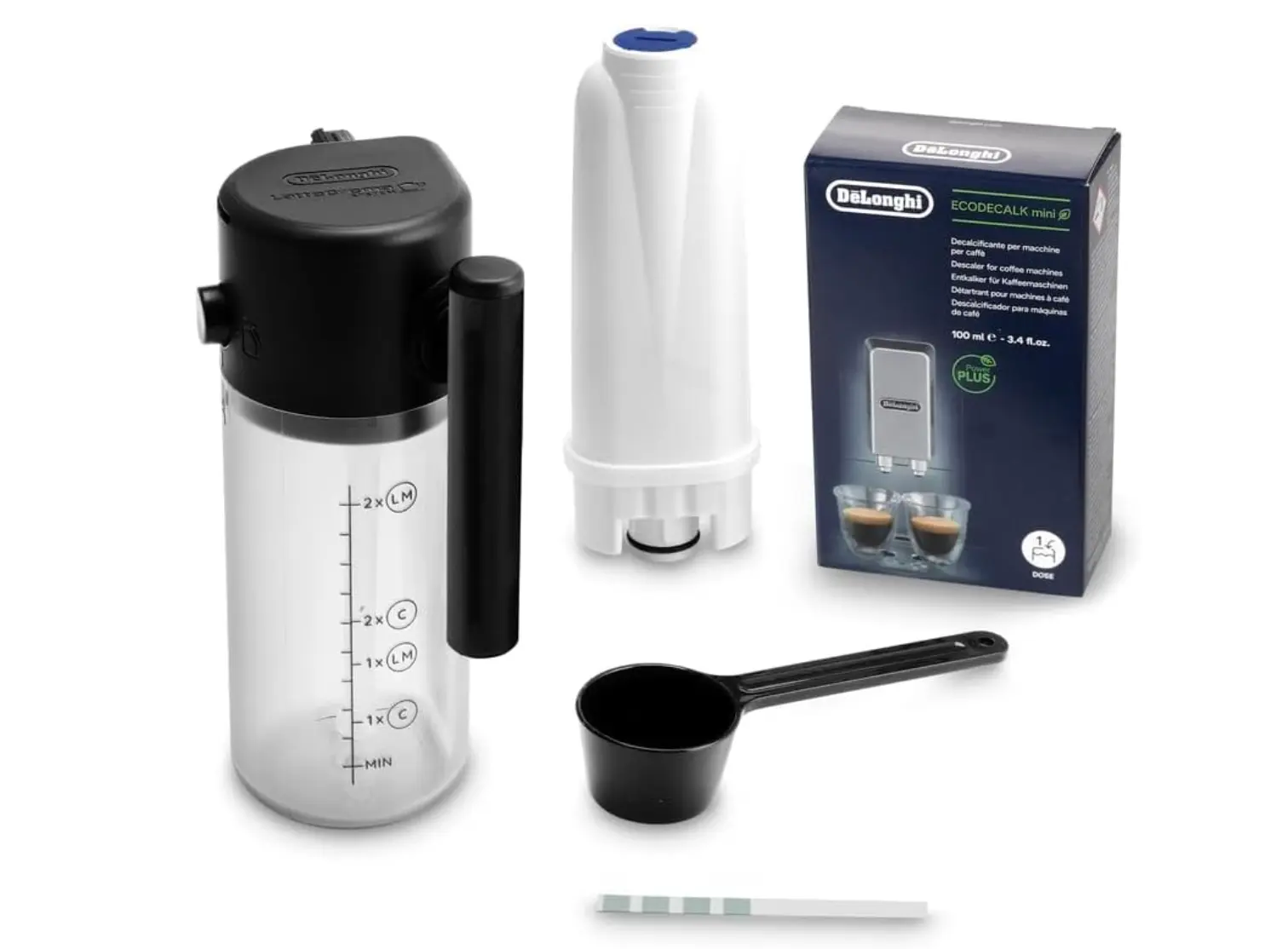 - კომპლექტაცია: Lattecrema-ს რძის კონტეინერი (Carafe), მოსახსნელი მოსადუღებელი ბლოკი