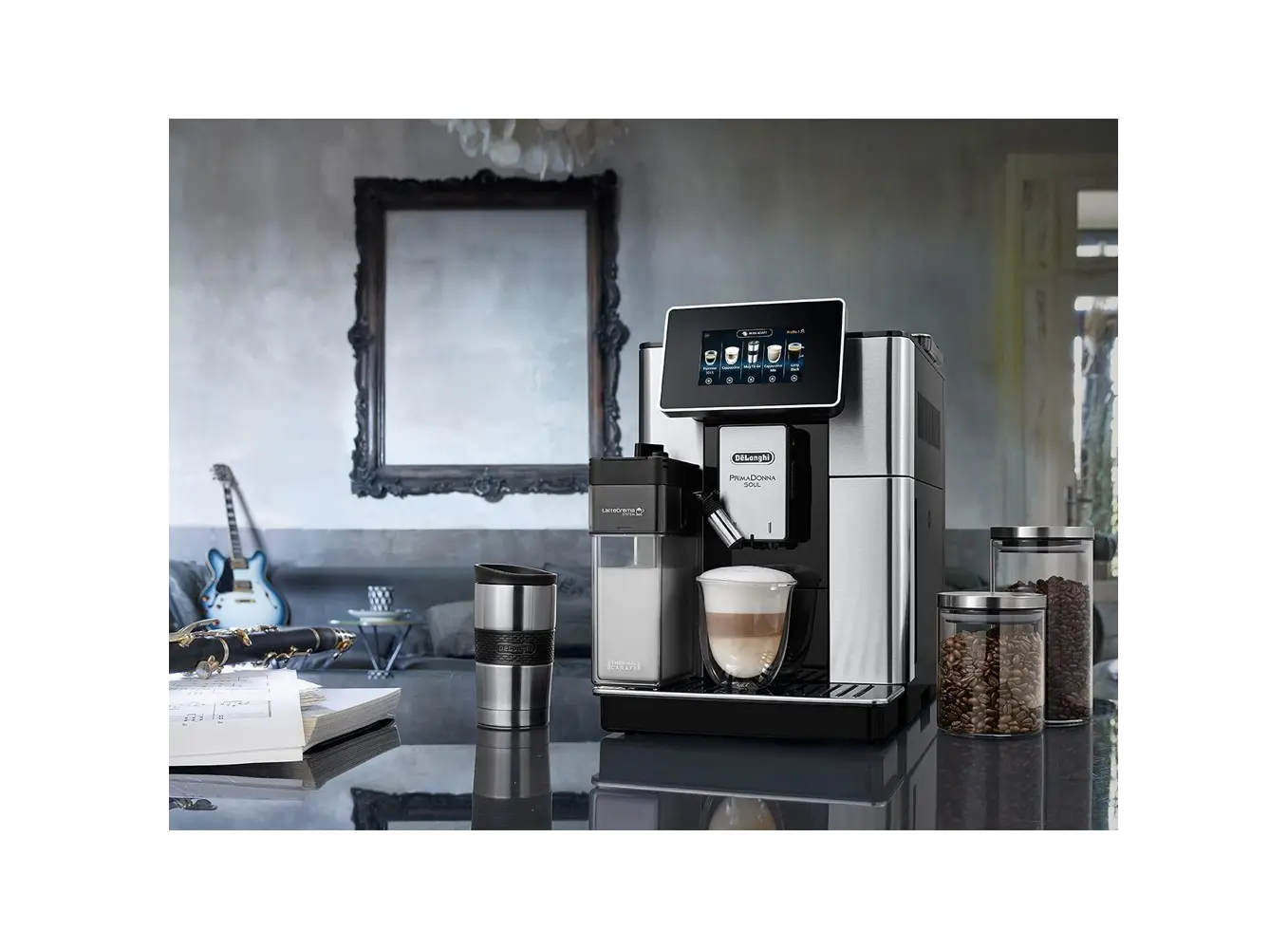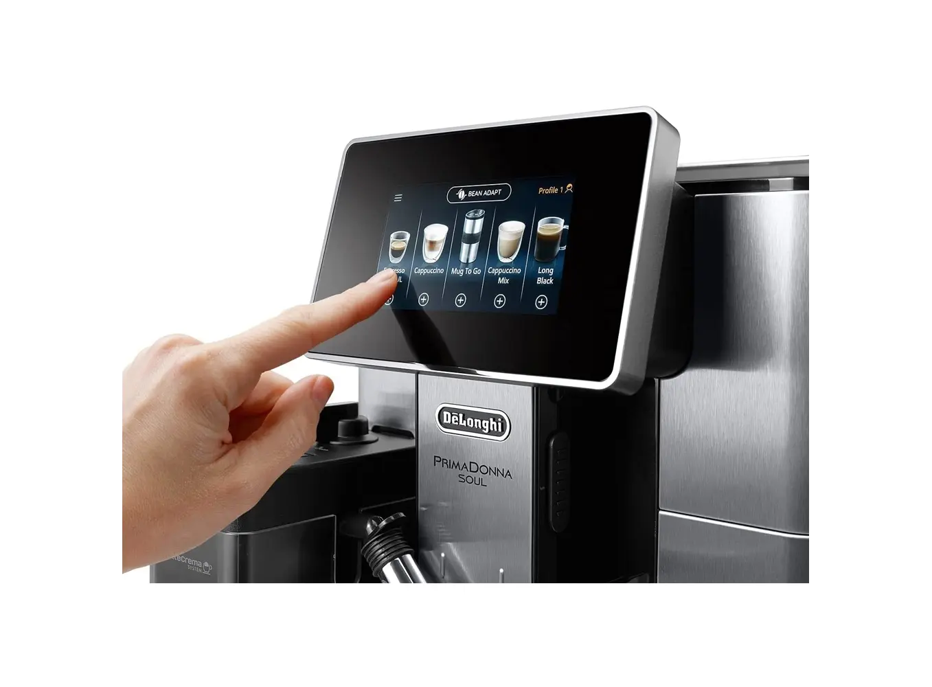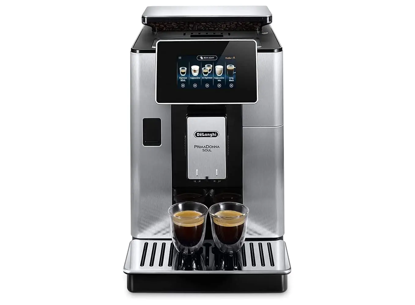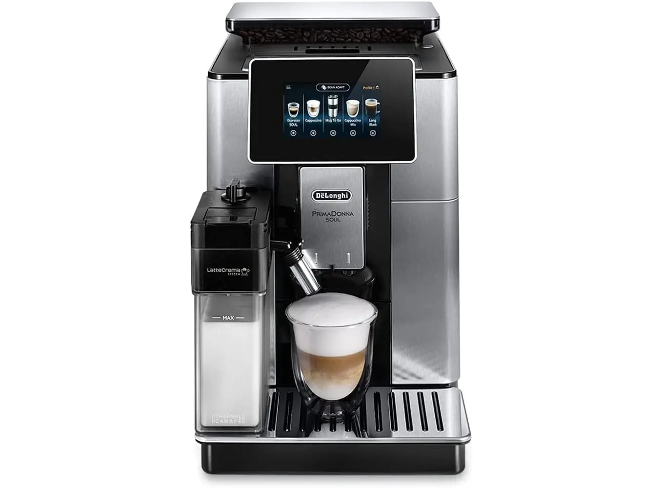 Delonghi ECAM610.74.MB PrimaDonna Soul არის პრემიუმ კლასის ავტომატური ყავის აპარატი, რომელიც აერთიანებს ინოვაციურ ტექნოლოგიებსა და ელეგანტურ დიზაინს. Bean Adapt ტექნოლოგია ავტომატურად არეგულირებს საფქვავის დონესა და მომზადების პარამეტრებს, რათა მაქსიმალურად გამოავლინოს თქვენი რჩეული ყავის არომატი. LatteCrema Hot სისტემა უზრუნველყოფს მდიდარ და კრემისებურ რძის ქაფს, რაც იდეალურია კაპუჩინოსა და სხვა რძიან სასმელებისთვის. აპარატი გთავაზობთ 21 სხვადასხვა სასმელს, მათ შორის ესპრესო, კაპუჩინო, ლატე მაკიატო და სხვა, რომელთა მომზადება შესაძლებელია ერთი შეხებით 4.3" სენსორული ეკრანიდან ან Coffee Link აპლიკაციის მეშვეობით. მოწყობილობა აღჭურვილია 500 გრამიანი მარცვლეულის კონტეინერით, 2.2 ლიტრიანი წყლის რეზერვუარითა და 19 ბარის წნევის ტუმბოთი, რაც უზრუნველყოფს მაღალი ხარისხის ყავის მომზადებას. მისი კომპაქტური ზომები და თანამედროვე დიზაინი იდეალურად ერგება ნებისმიერ სამზარეულოს ინტერიერს.