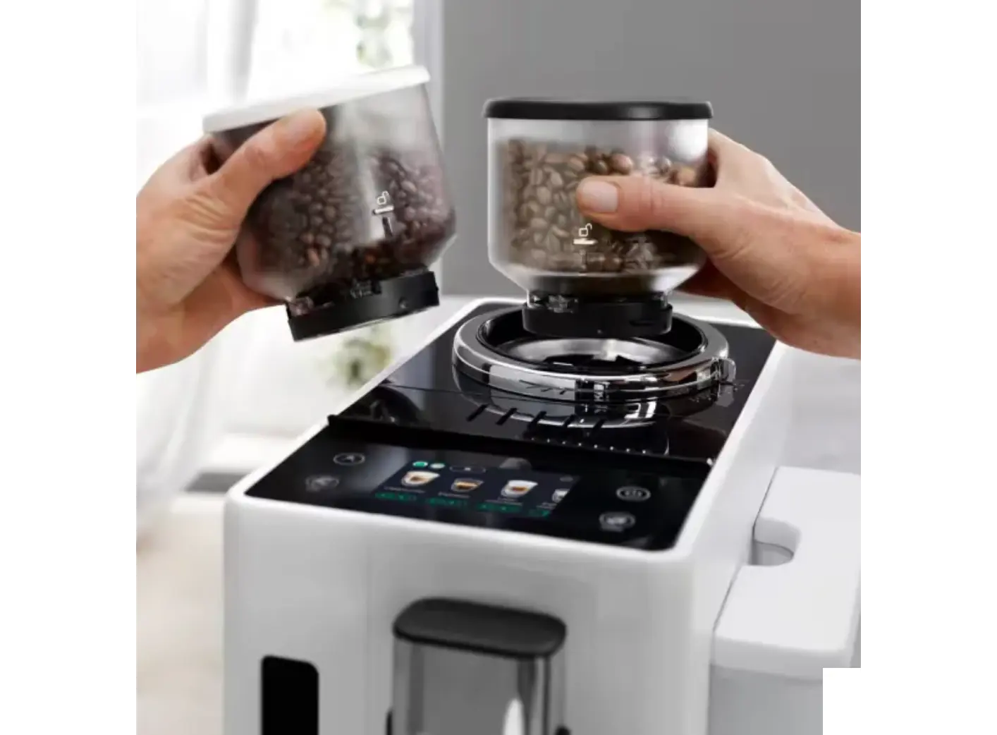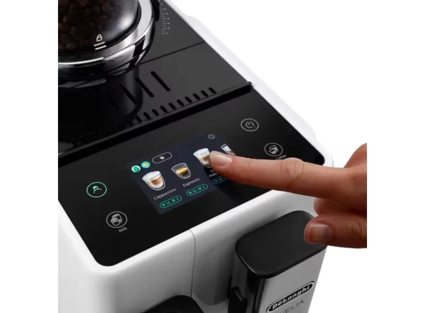 აღმოაჩინეთ ყავის მომზადების უმაღლესი ხელოვნება DeLonghi-ს პრემიუმ კლასის ავტომატური ყავის აპარატით. მოცემული მოდელი ელეგანტურ თეთრ დიზაინსა და ინოვაციურ ტექნოლოგიებს აერთიანებს, რაც მას ნებისმიერი თანამედროვე სამზარეულოს მშვენებად აქცევს. ერთი შეხებით თქვენ შეგიძლიათ მოამზადოთ მრავალფეროვანი სასმელები: კლასიკური ესპრესო, ამერიკანო, კაპუჩინო თუ ლატე მაკიატო. ექსკლუზიური LatteCrema სისტემა უზრუნველყოფს იდეალურ, სქელ და ხავერდოვან რძის ქაფს ოპტიმალურ ტემპერატურაზე, რომელიც ბოლო წვეთამდე ინარჩუნებს სიმკვრივეს. აპარატი აღჭურვილია ინტუიციური ფერადი დისპლეით, რაც მართვასა და სასმელების პერსონალიზაციას მაქსიმალურად ამარტივებს – დაარეგულირეთ ყავის სიძლიერე, მოცულობა და ტემპერატურა თქვენი გემოვნებით. ინტეგრირებული საფქვავი უჟანგავი ფოლადის პირებით გარანტიას იძლევა მარცვლების ზუსტ და თანაბარ დაფქვაზე, რაც ყავის პირვანდელ არომატს სრულად ათავისუფლებს. ავტომატური წმენდისა და ნადების მოცილების ფუნქციები კი მოწყობილობის ხანგრძლივ და საიმედო მუშაობას უზრუნველყოფს. შეიძინეთ ახლავე და შეიტანეთ ნამდვილი იტალიური ყავის არომატი თქვენს ყოველდღიურობაში.