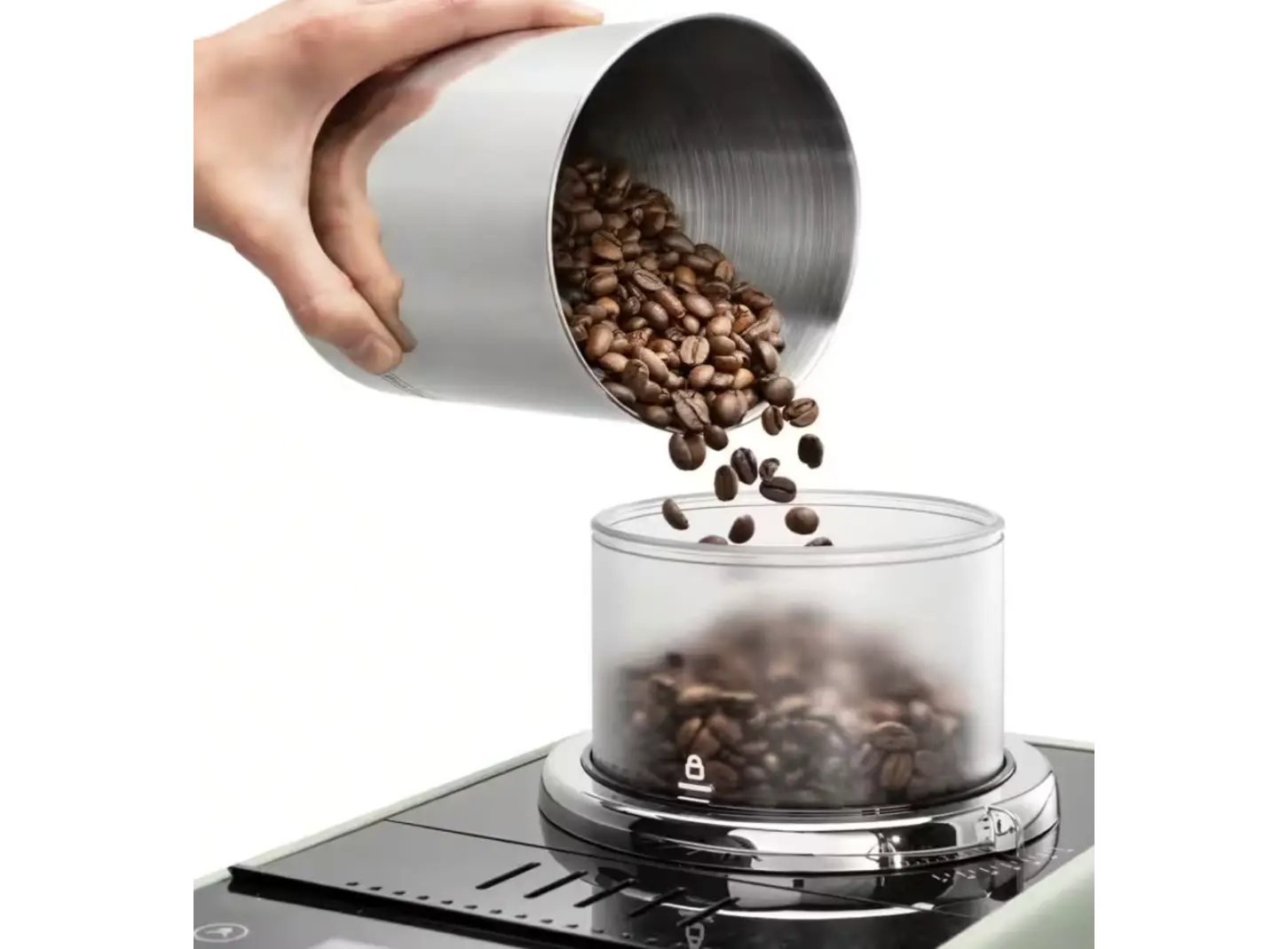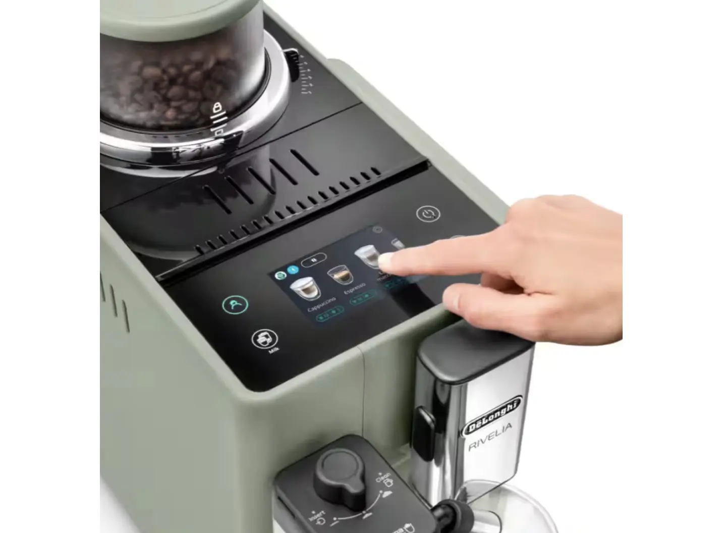 Delonghi EXAM441.55.GR Rivelia წარმოადგენს სრულად ავტომატურ ყავის აპარატს, რომელიც აერთიანებს ინოვაციურ ტექნოლოგიებსა და ელეგანტურ დიზაინს. Bean Switch სისტემა საშუალებას გაძლევთ მარტივად შეცვალოთ ყავის მარცვლები, რაც იდეალურია სხვადასხვა არომატის შესასწავლად. Bean Adapt ტექნოლოგია ავტომატურად არეგულირებს დაფქვის დონეს, დოზას და ტემპერატურას, რაც უზრუნველყოფს საუკეთესო გემოს. LatteCrema Hot სისტემა ქმნის მდიდარ და ხანგრძლივ რძის ქაფს, ხოლო 3.5-დუიმიანი სენსორული ეკრანი გთავაზობთ 16 ერთ შეხებით სასმელს და 4 მომხმარებლის პროფილს. კომპაქტური ზომები (245x430x385 მმ) და 1.4 ლიტრიანი წყლის რეზერვუარი უზრუნველყოფს კომფორტულ გამოყენებას. მისი თანამედროვე დიზაინი და მრავალფუნქციურობა იდეალურია ნებისმიერი სამზარეულოსთვის.