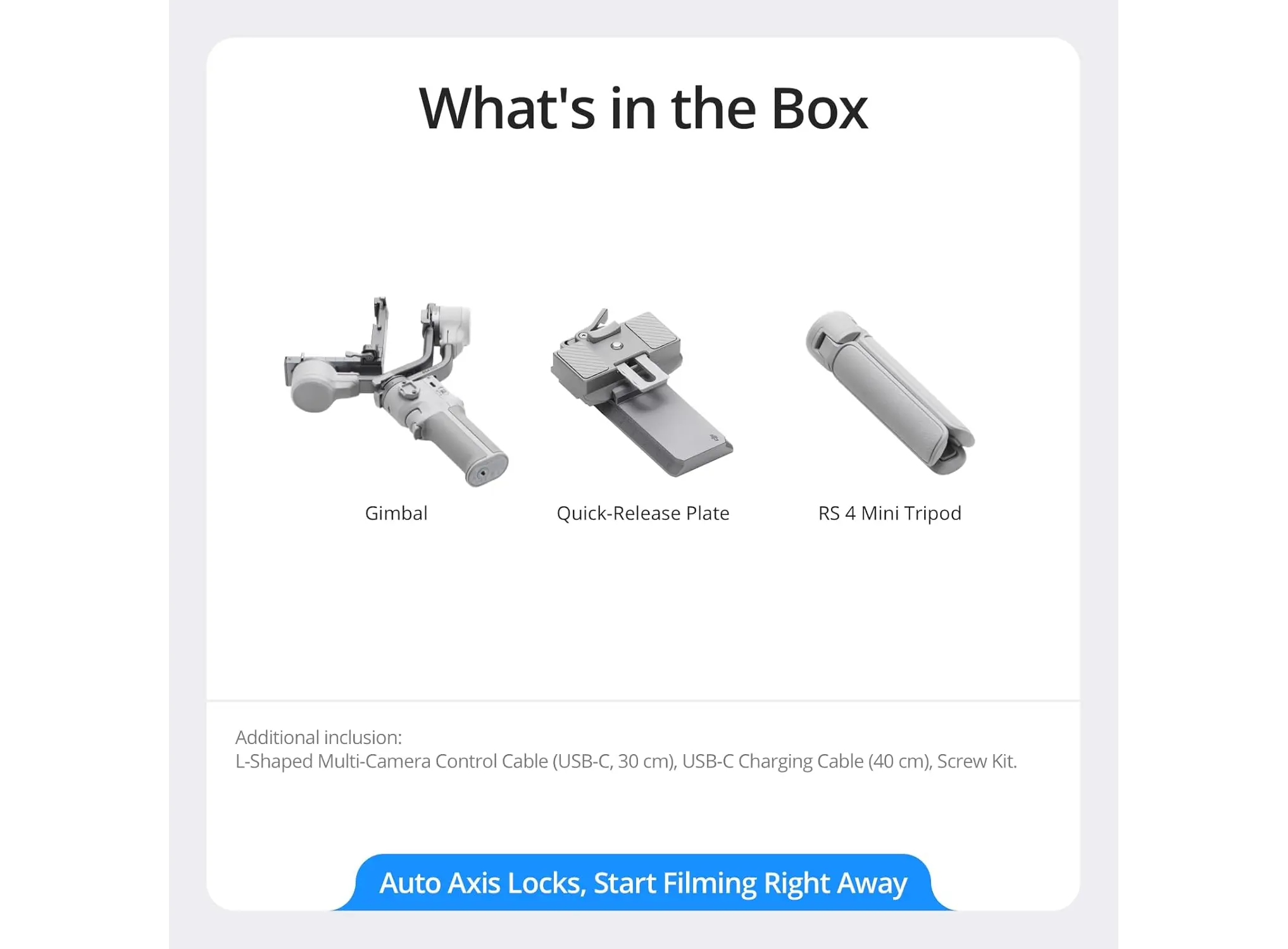 DJI RS 4 Mini არის კომპაქტური, მსუბუქი და მძლავრი 3‑ღერძიანი გიმბალი, რომელიც შექმნილია ორივე – ფოტოგრაფებისთვის და ვიდეოკონტენტის ქმნიში – მაქსიმალურად მოქნილი გამოსაყენებლად. მას შეუძლია ითავოს 2 კგ დატვირთვა (4.4 ფუნტი) და სწრაფი ავტომატური ღერძების ყლეპვა–განკუმშვა მნიშვნელოვნად ესანგრებს მოწყობილობის მოსამზადებლად შედარებით მოკლე დროში. Teflon™‑იანი გაუმჯობესებული ბალანსირების სისტემა უზრუნველყოფს სითხეს და სტაბილურ მოძრაობას, ხოლო 3‑ე თაობის სწრაფი ფიქსაცია ჰორიზონტალურიდან ვერტიკალურ ხედზე ხდება მხოლოდ 10 წამში – იდეალურია სოციალური მედიისთვის. 1.4” ფერადი LCD ეკრანი და ინტელიგენტური ქსელის მოდულები (პორტის მხარდაჭერა, Bluetooth/USB‑C) გაძლევთ შურის და სფარგლიფის კონტროლს. ასევე შესაძლებელია სმარტფონის დამატებითი სამაგრი. აქტიური მწარმოებლების მხარდაჭერით და 13 საათიანი უსწრაფესი ბატარეით, ეს გიმბალი იდეალურია დღეღამის გარეშე გადაღებებისთვის და მრავალაზომი სცენარისთვის.