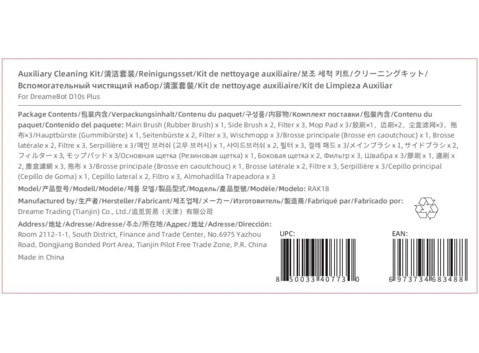 - თავსებადობა: Dreame D10s, Dreame D10s Pro, Dreame D10s Plus