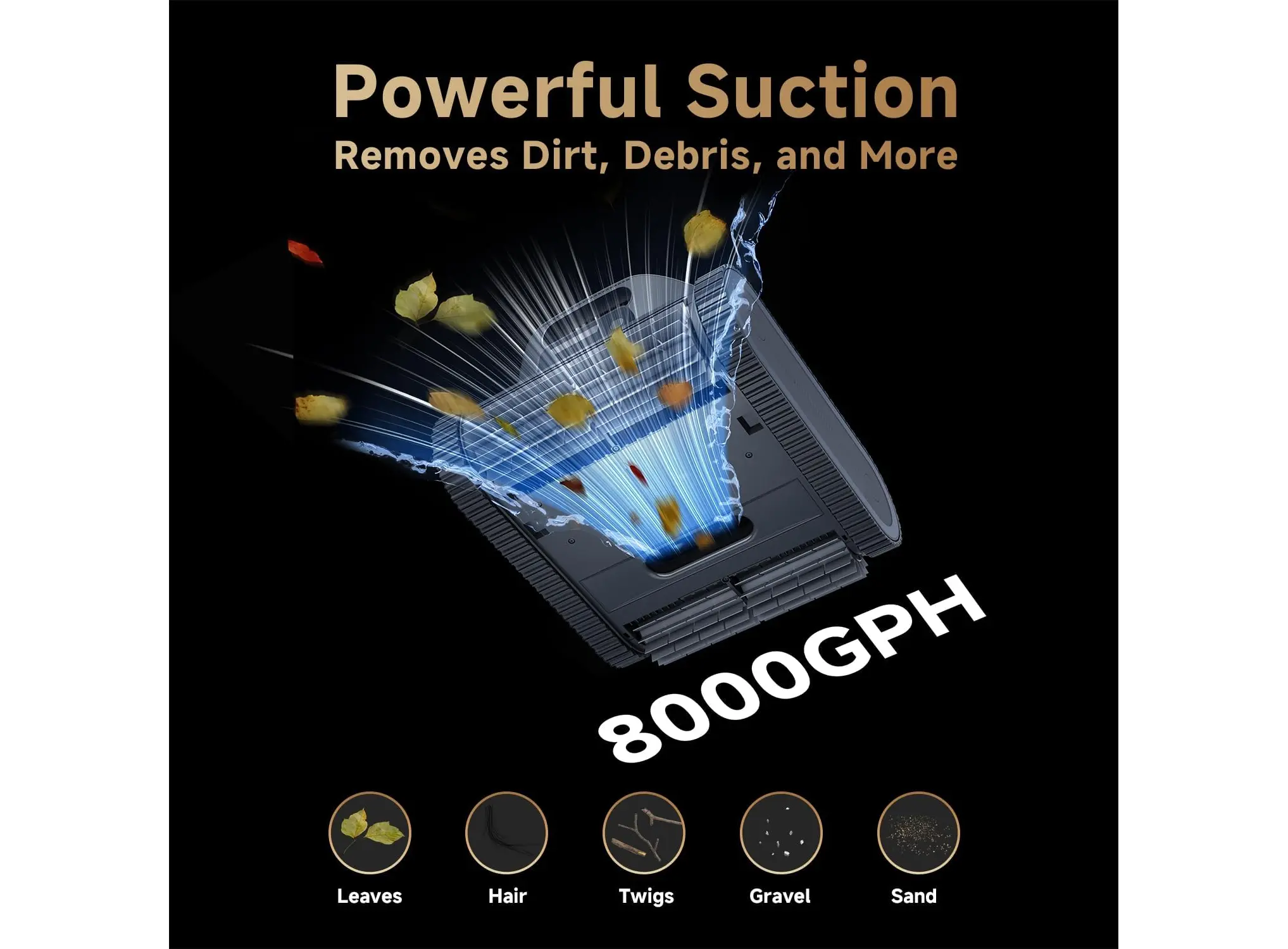 - შესრუტვის სიმძლავრე: 8000 GPH