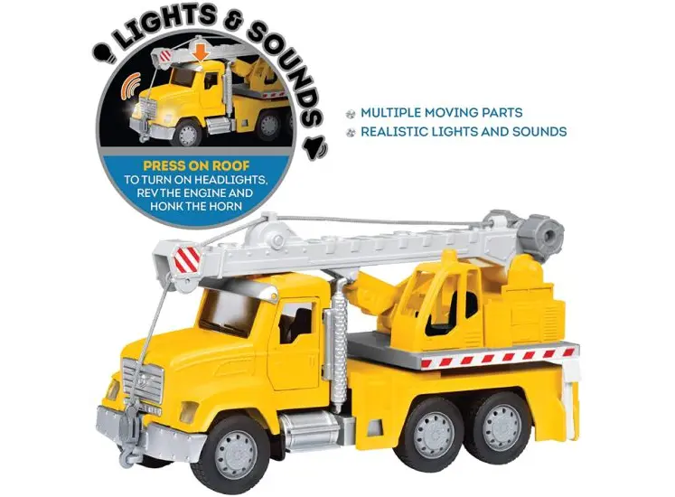 - კაპოტის კარების იღება, სათამაშო ამწე ტრიალებს